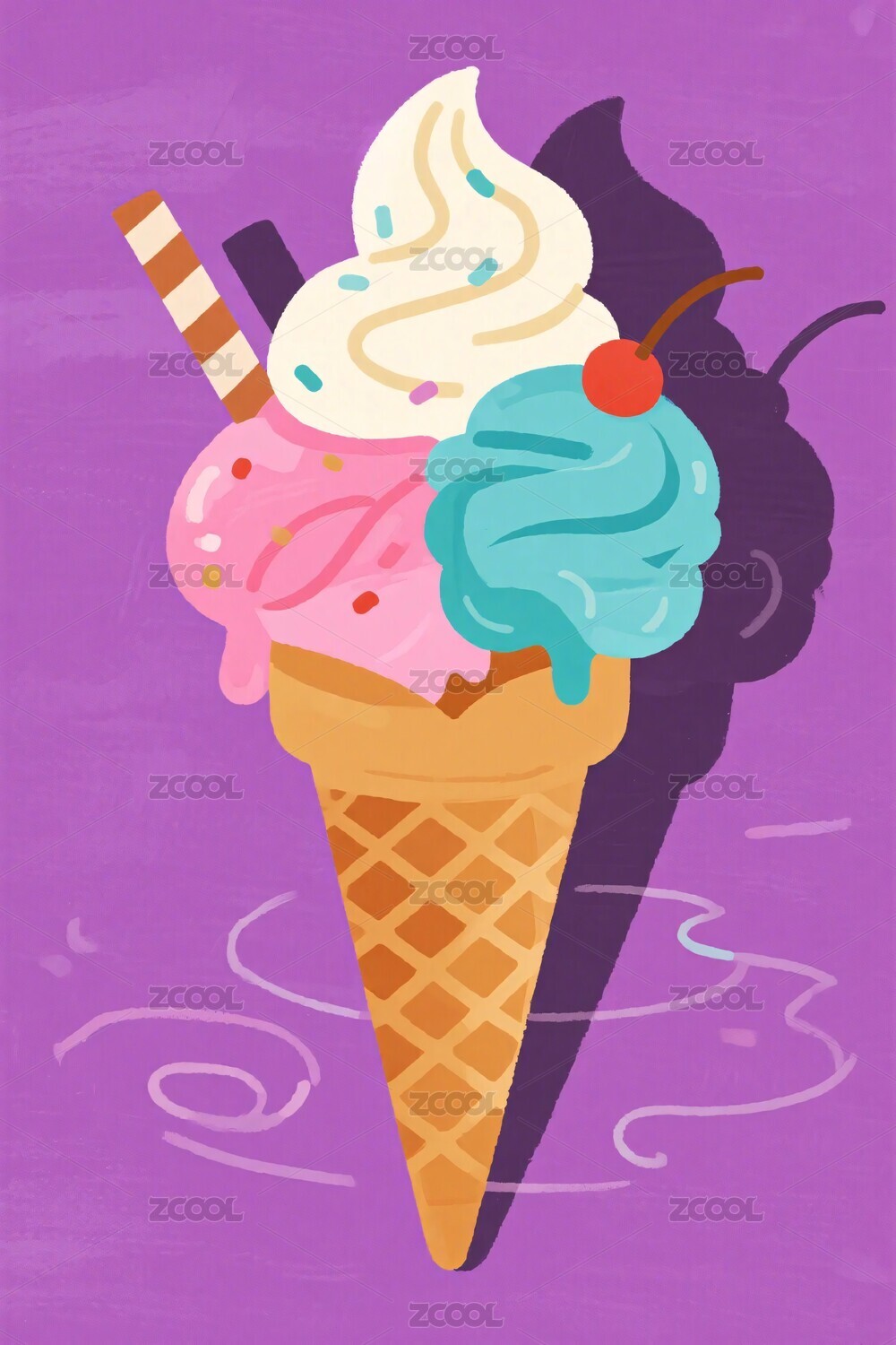 夏季五彩缤纷冰淇淋雪糕西瓜矢量插画元素