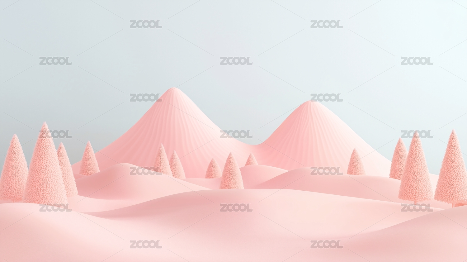 卡通的抽象艺术感秋天山脉风景3D插画素材
