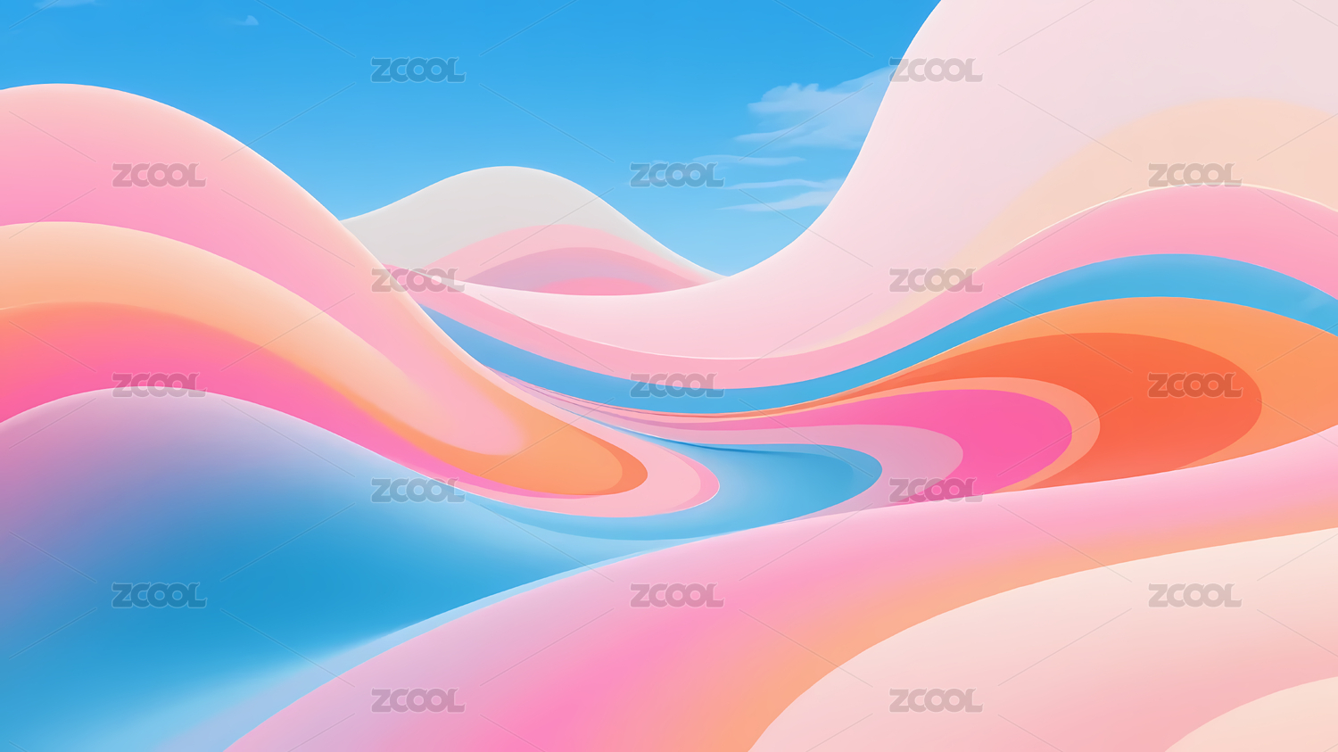 抽象渐变色彩叠加形成起伏曲线视觉冲击