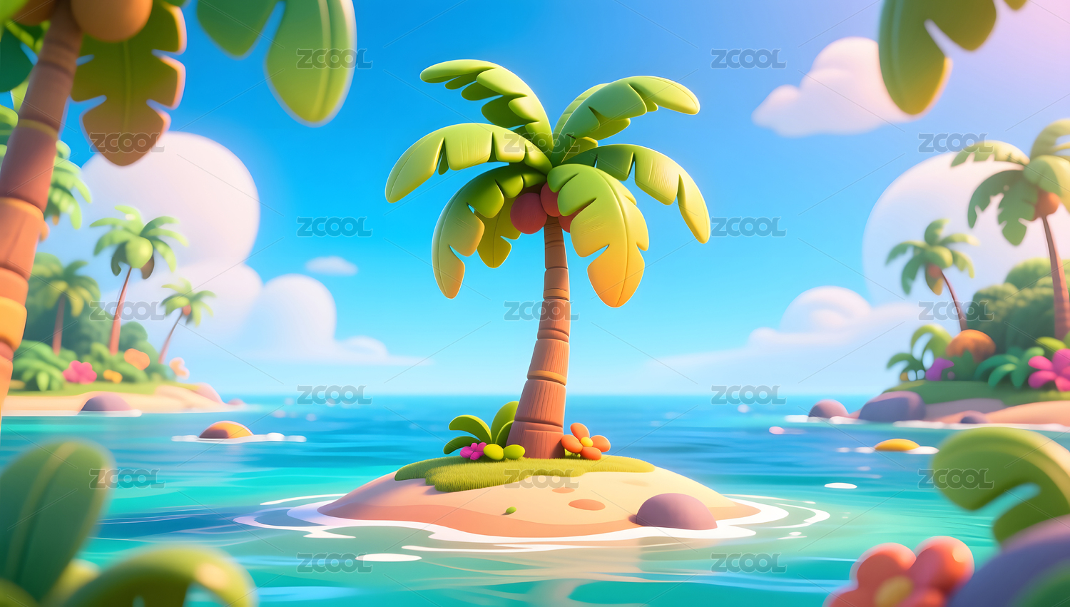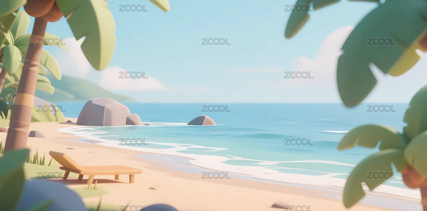 3D,卡通,放松,享受,休闲,娱乐,插画,风景,自然,夏天