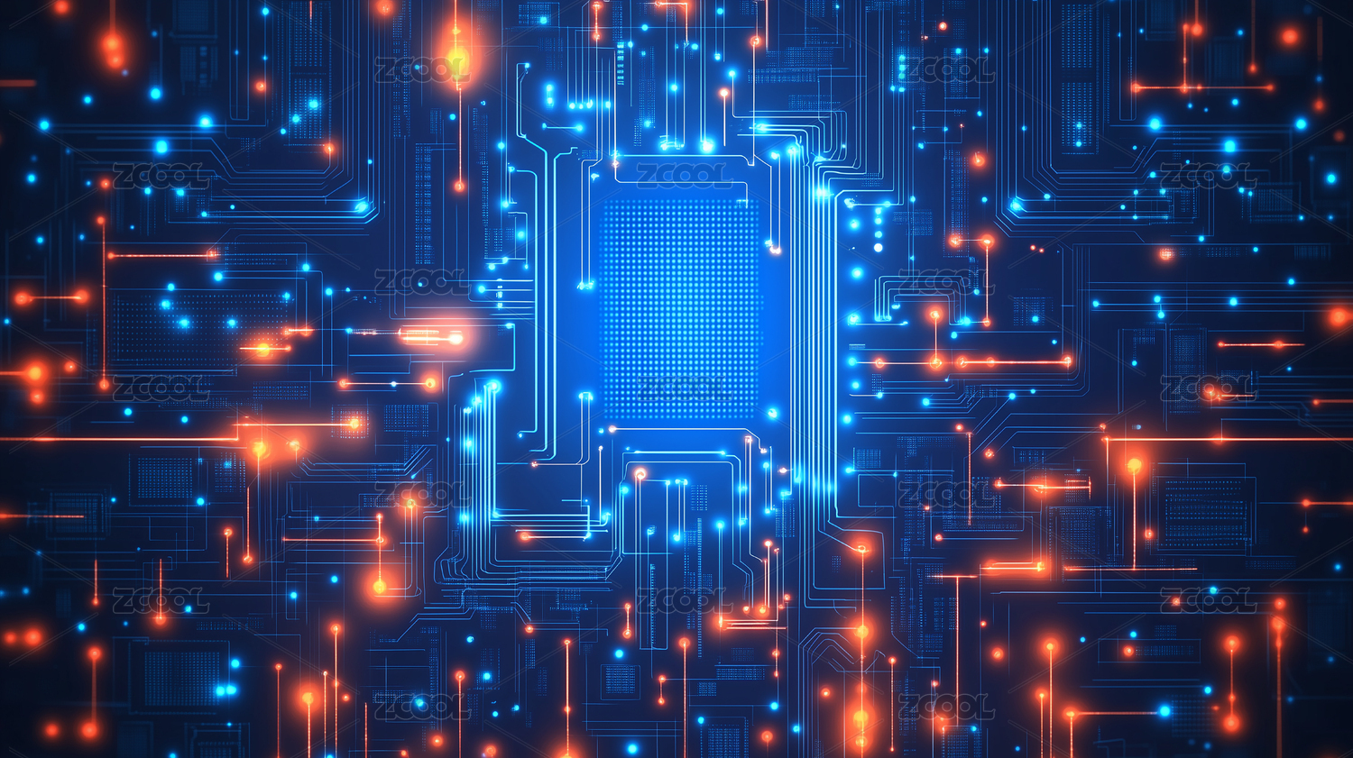 芯片金融科技赛博朋克人工智能三维渲染电路