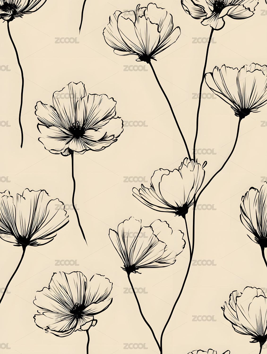 黑底时尚潮流一朵菊花发光线条透视X光插画
