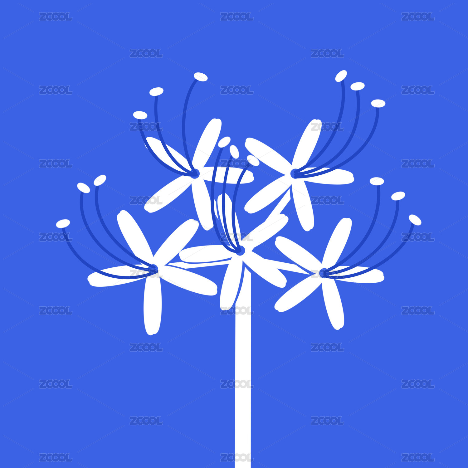 二十四节气对应花卉蓝白剪纸风插画之霜降