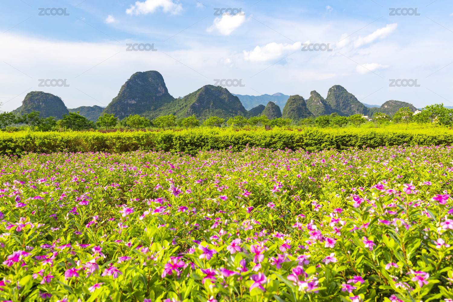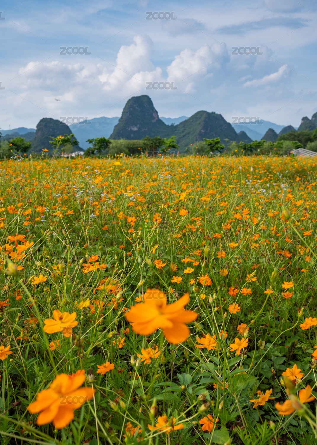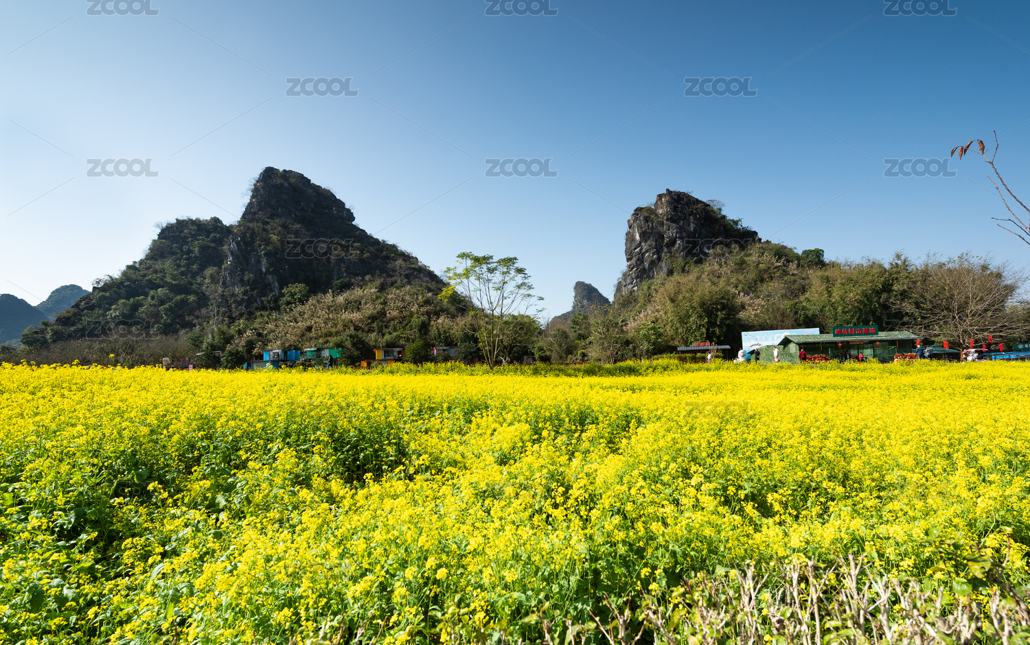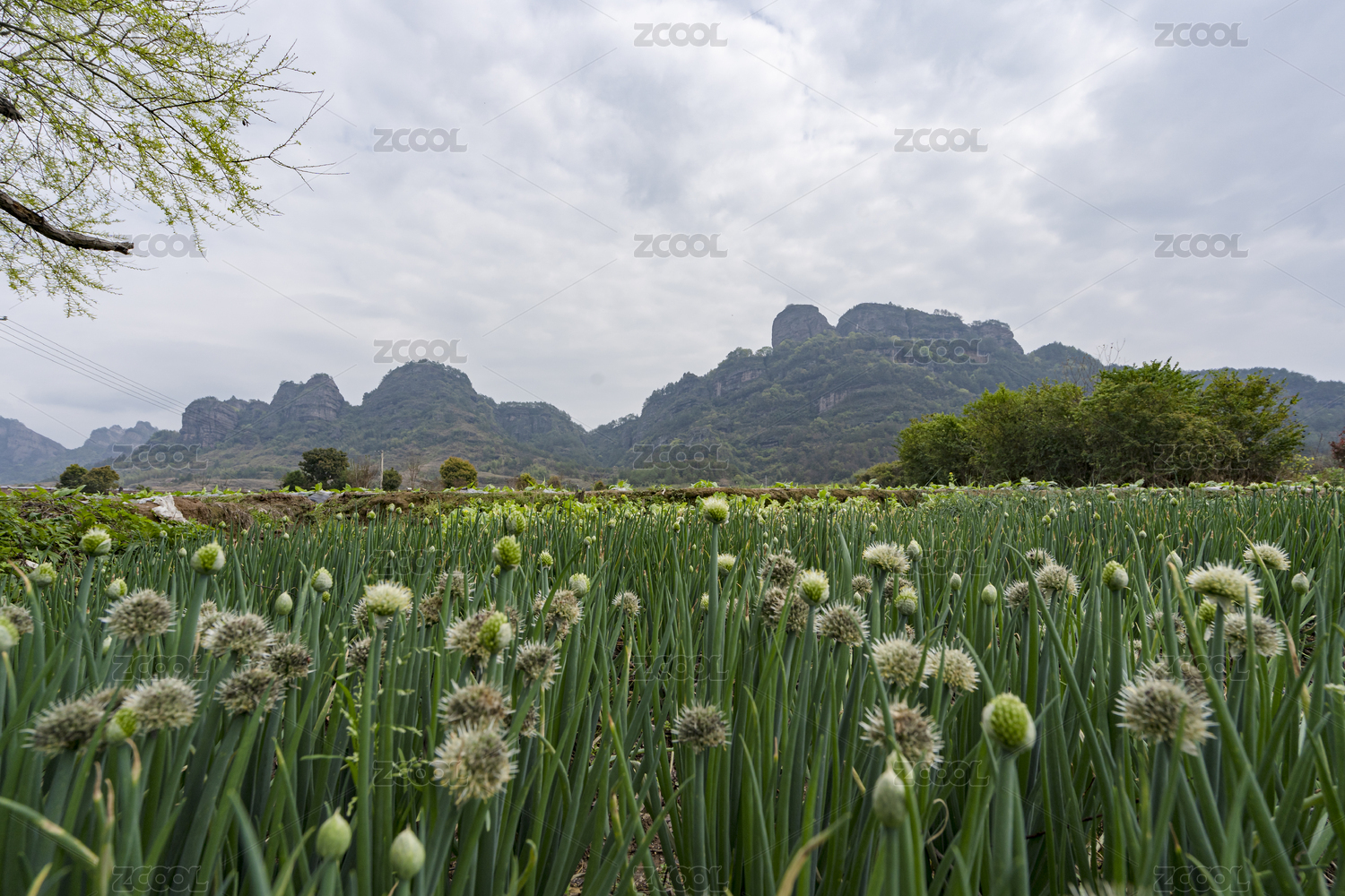 初春时分的大山为背景的广西柳州鹿寨县山区柑桔园