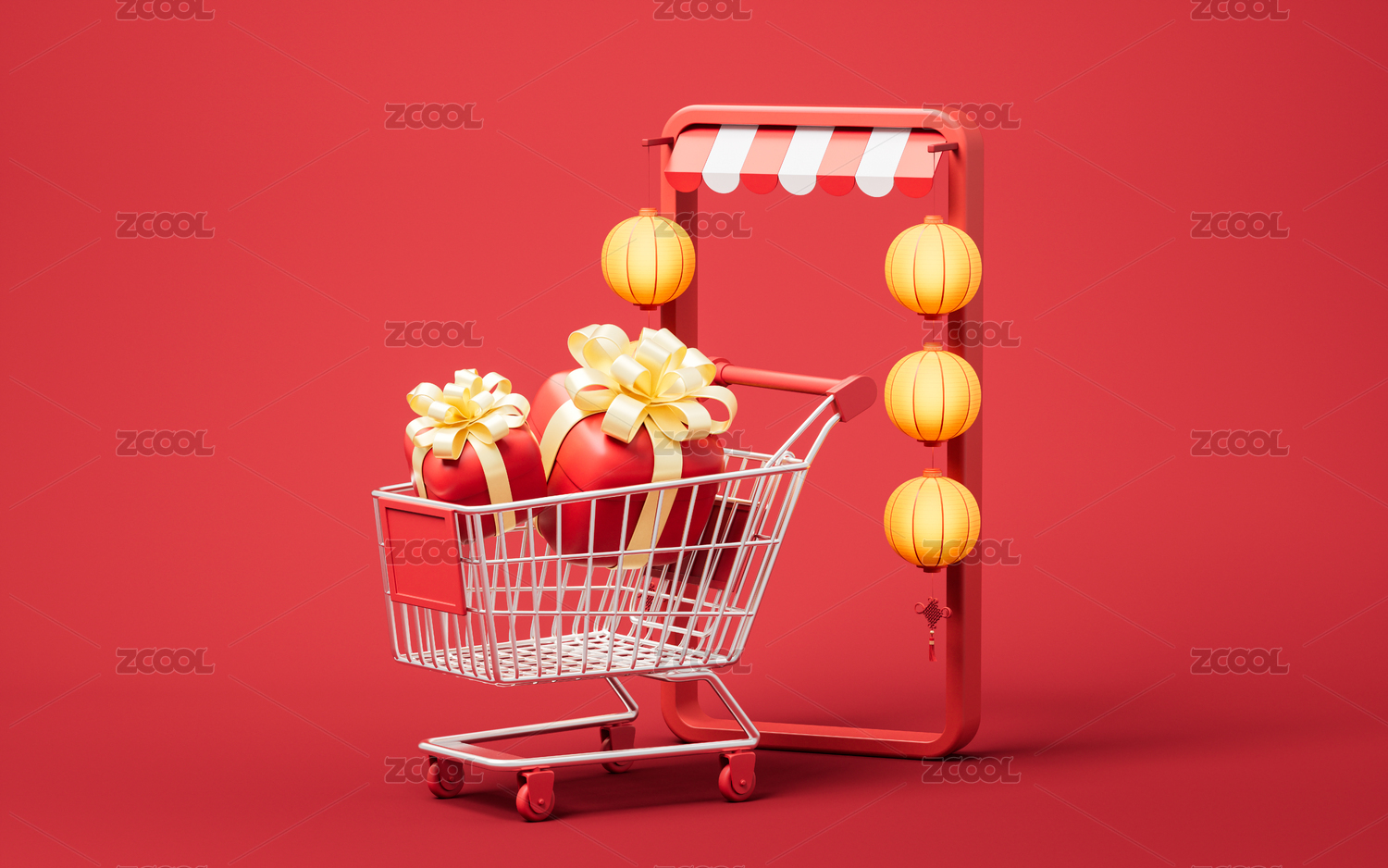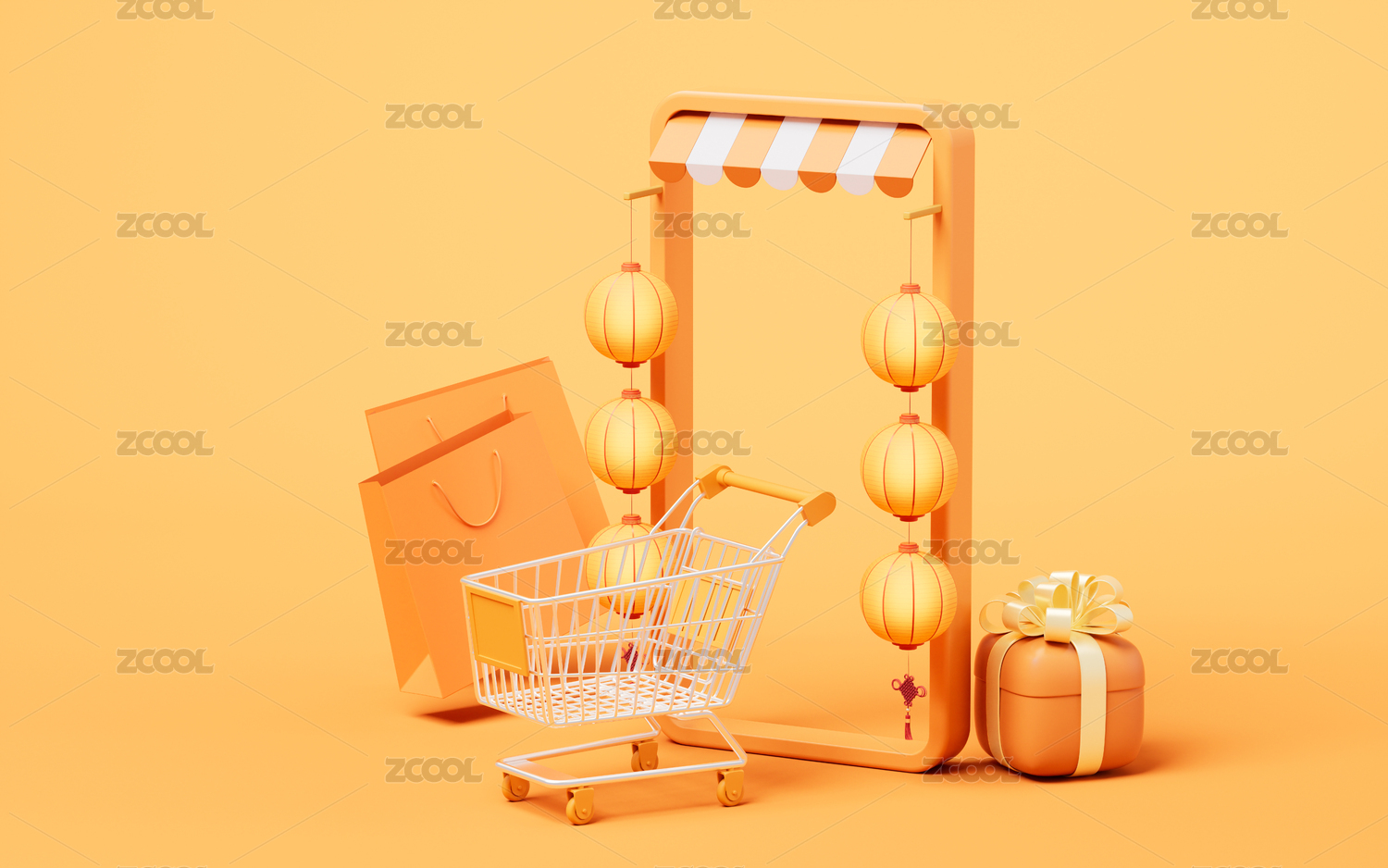 电商店铺与中国风古风灯笼3D渲染