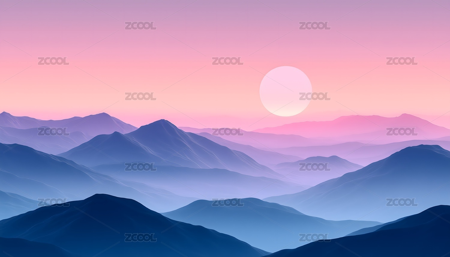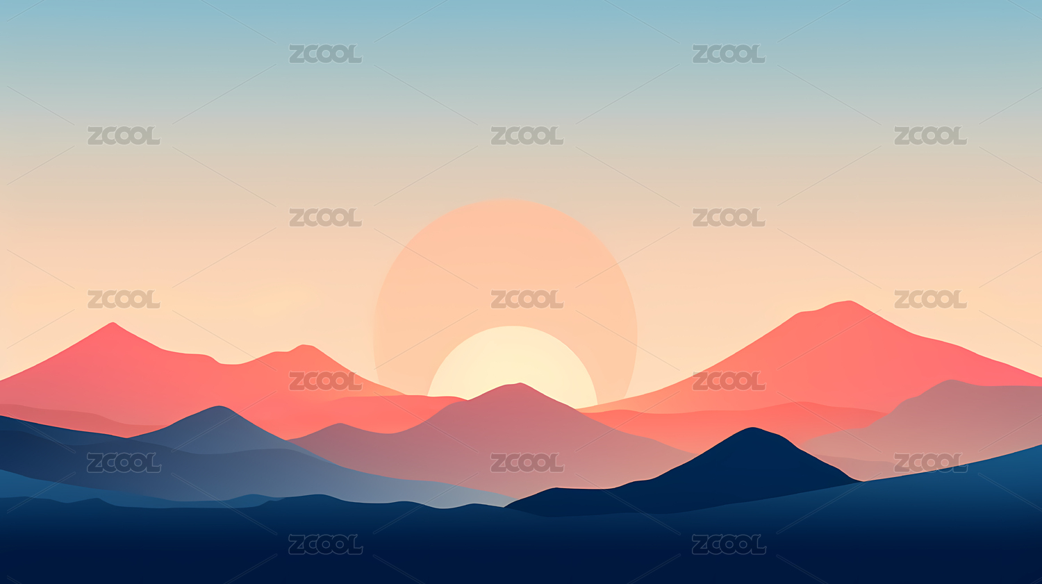 高山,自然,插画,风景,户外,艺术,太阳,背景,日落,国风