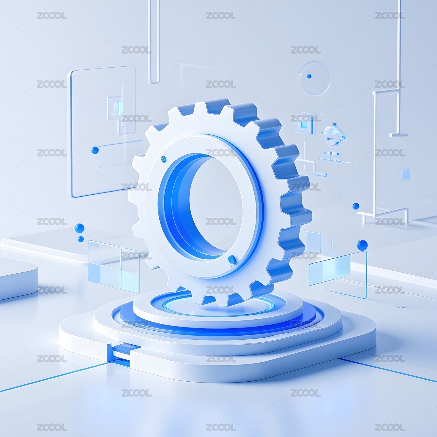 科技蓝白功能设置齿轮智能概念场景3D渲染