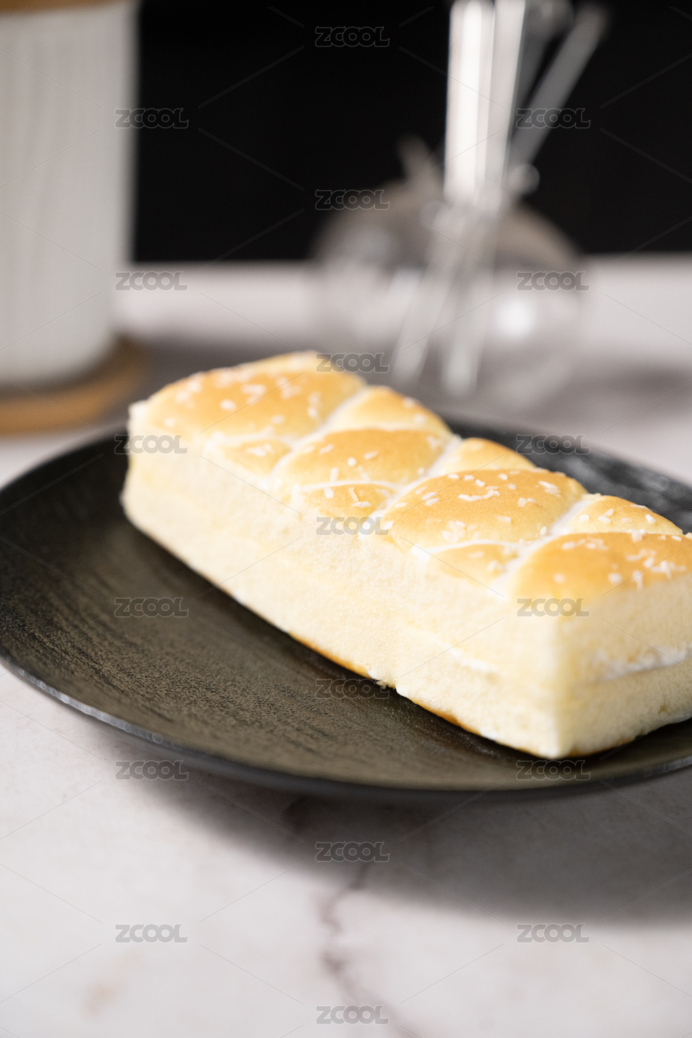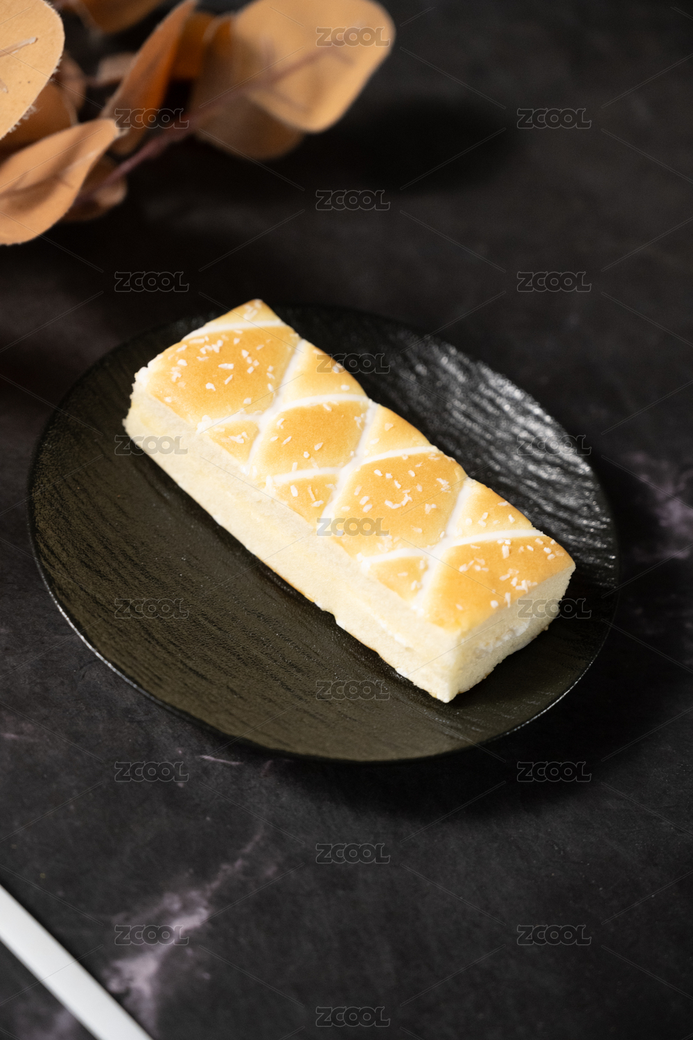 桌面上的盘子里的美味可口的乳酪肉松包