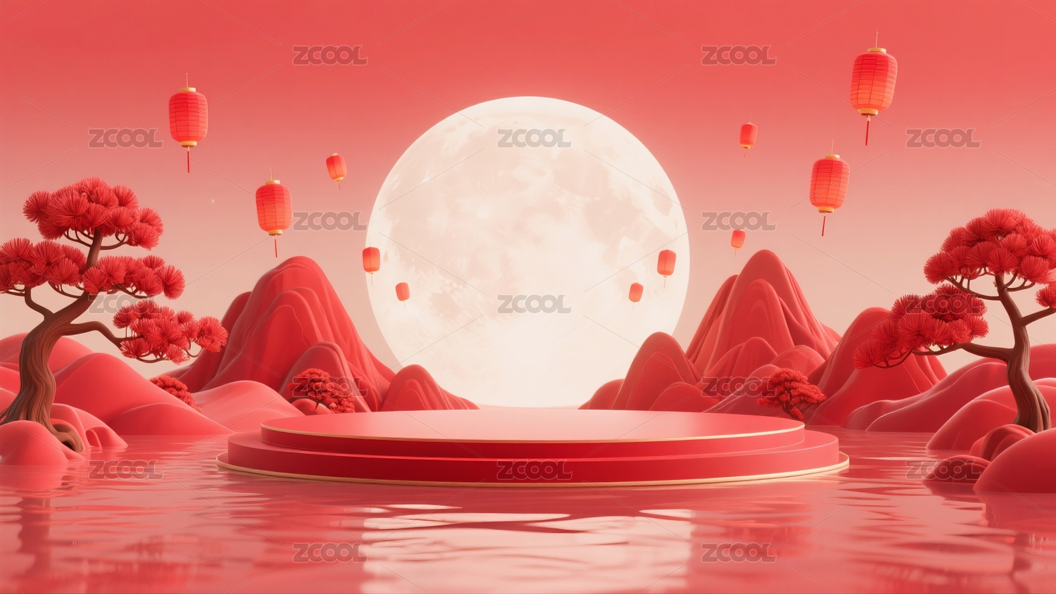 3D中式国风展台电商背景