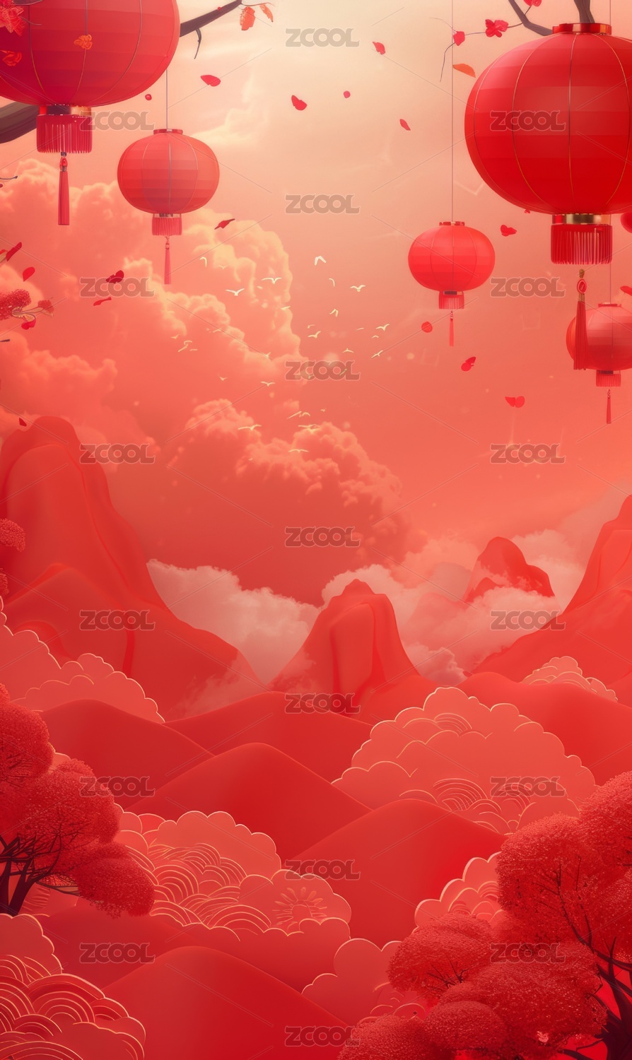 红色背景下的红灯笼装饰