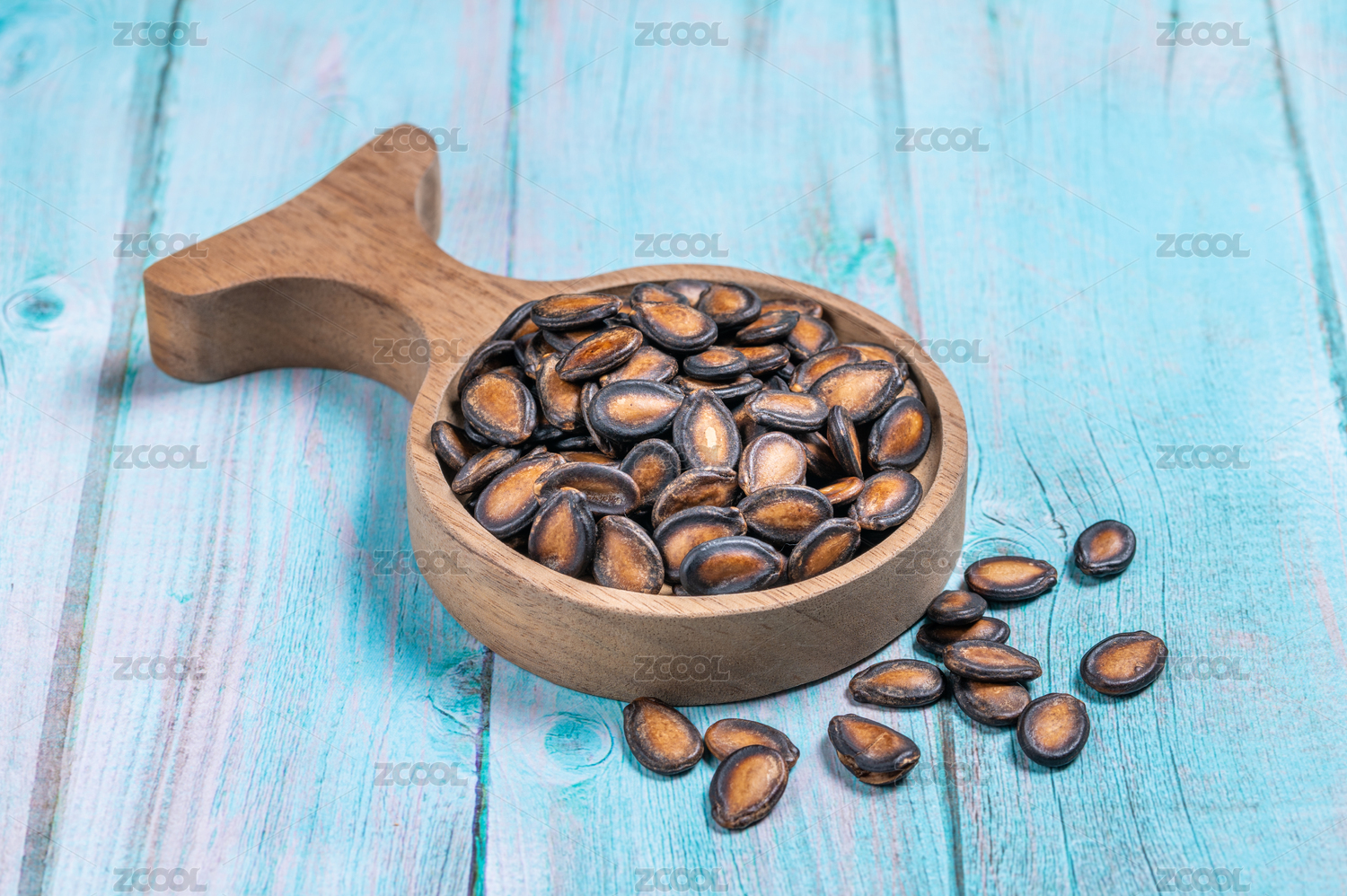 浅蓝色背景上的炒货黑瓜子
