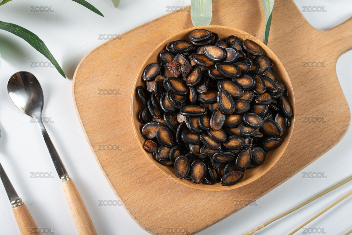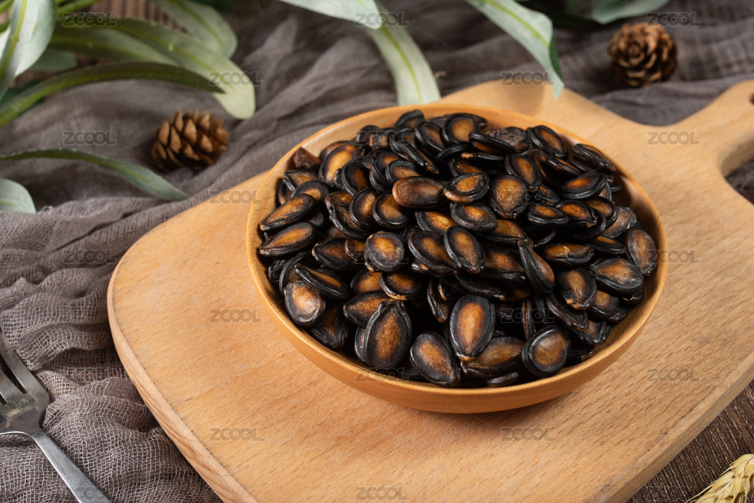 木纹桌上的黑瓜子