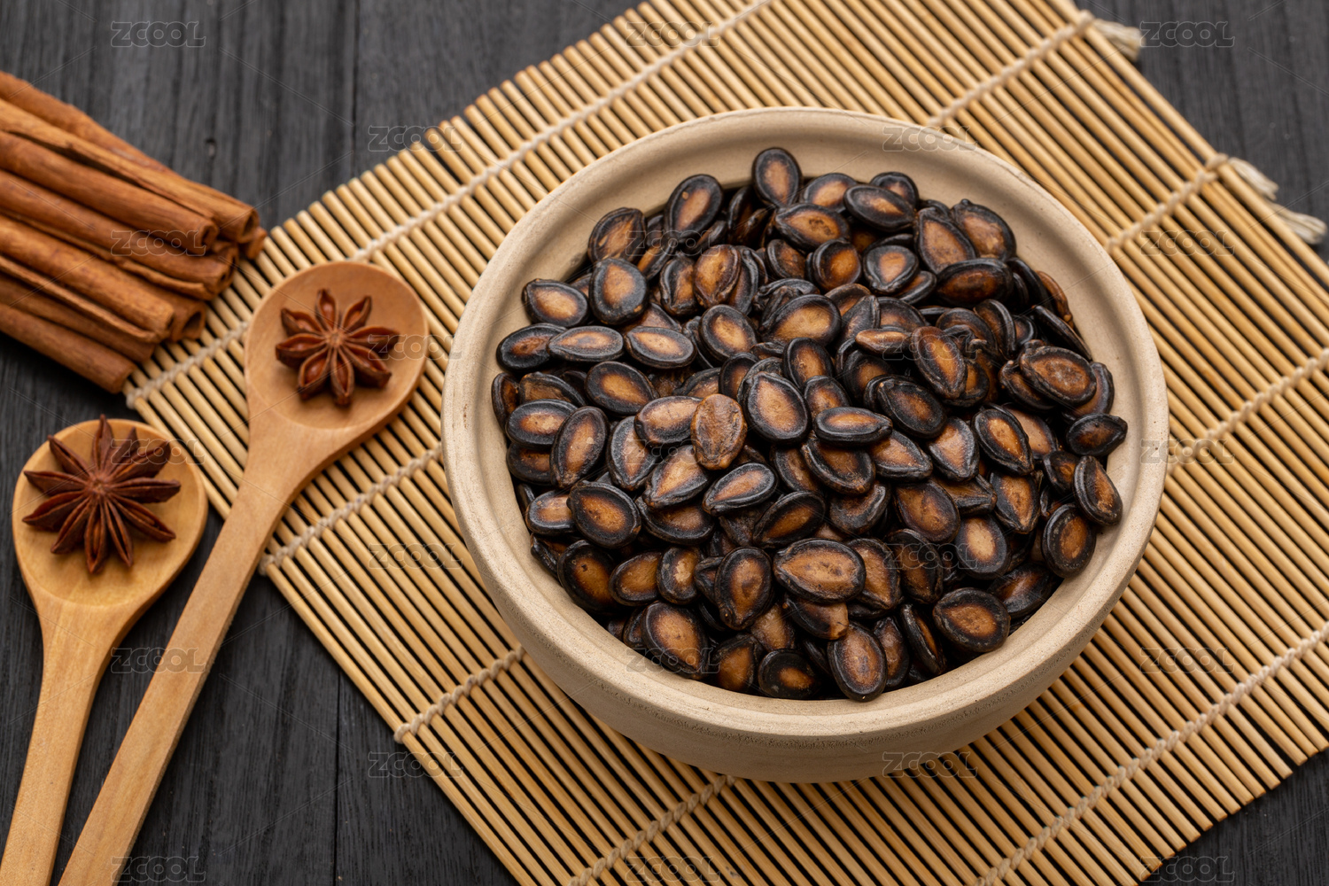 木纹桌上的炒货黑瓜子