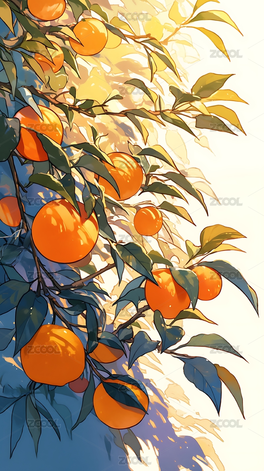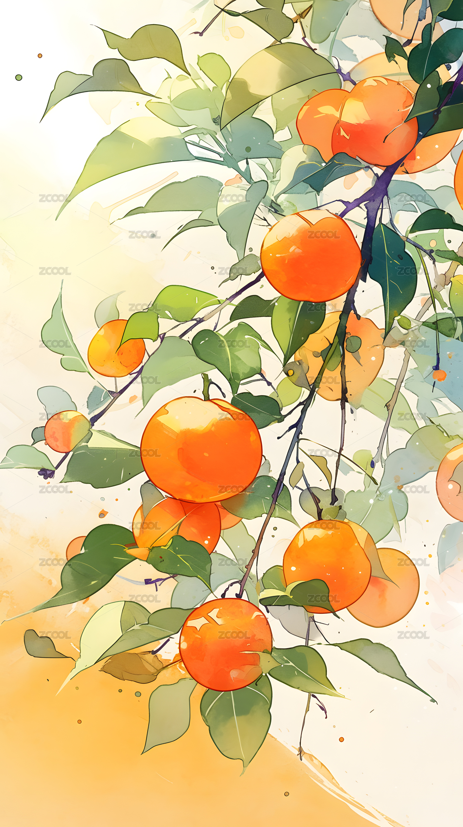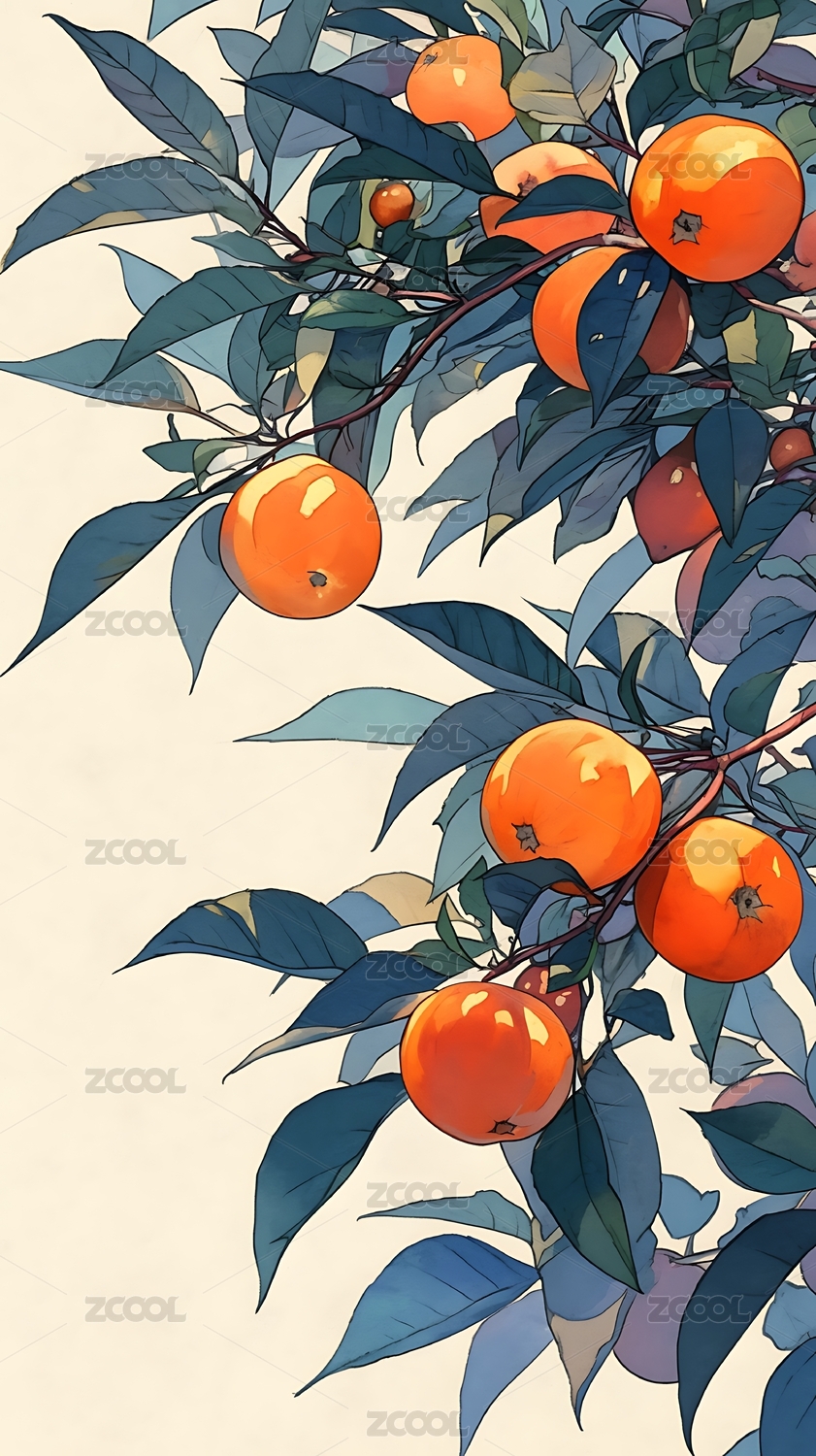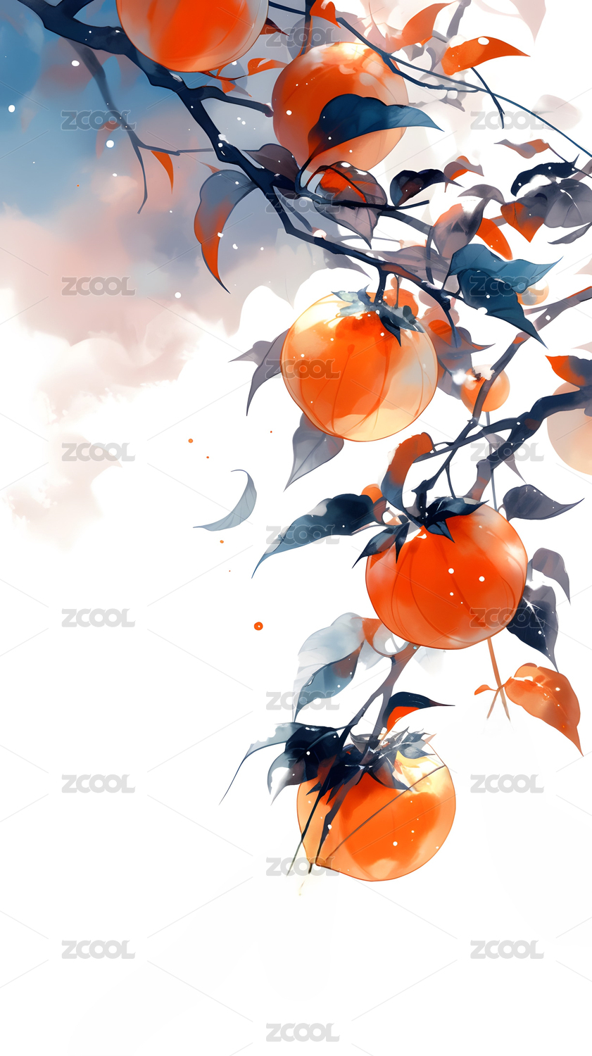 秋天,插画,橙色,立秋,自然,AIGC202402,水果,果实,收获,女孩