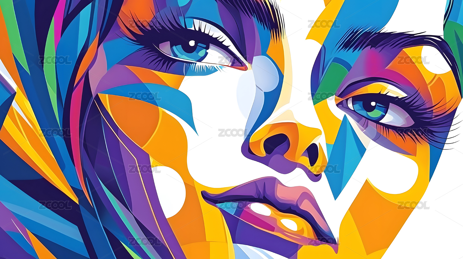 一位年轻女子充满活力肖像带有丰富多彩图案