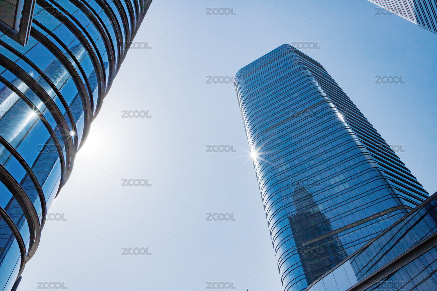 逆光仰视现代化玻璃幕墙超高层建筑群