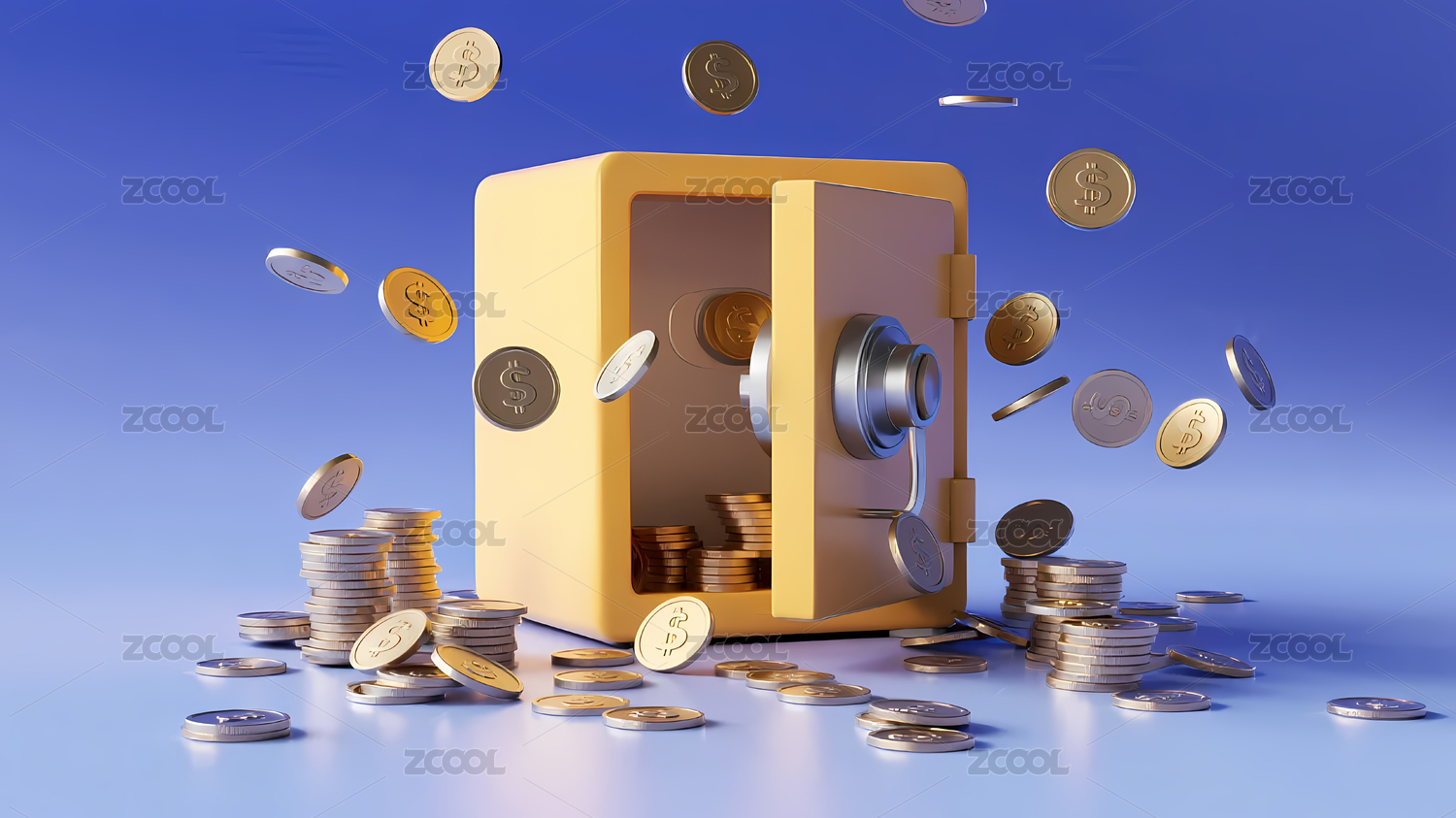 黄色保险箱金币散落