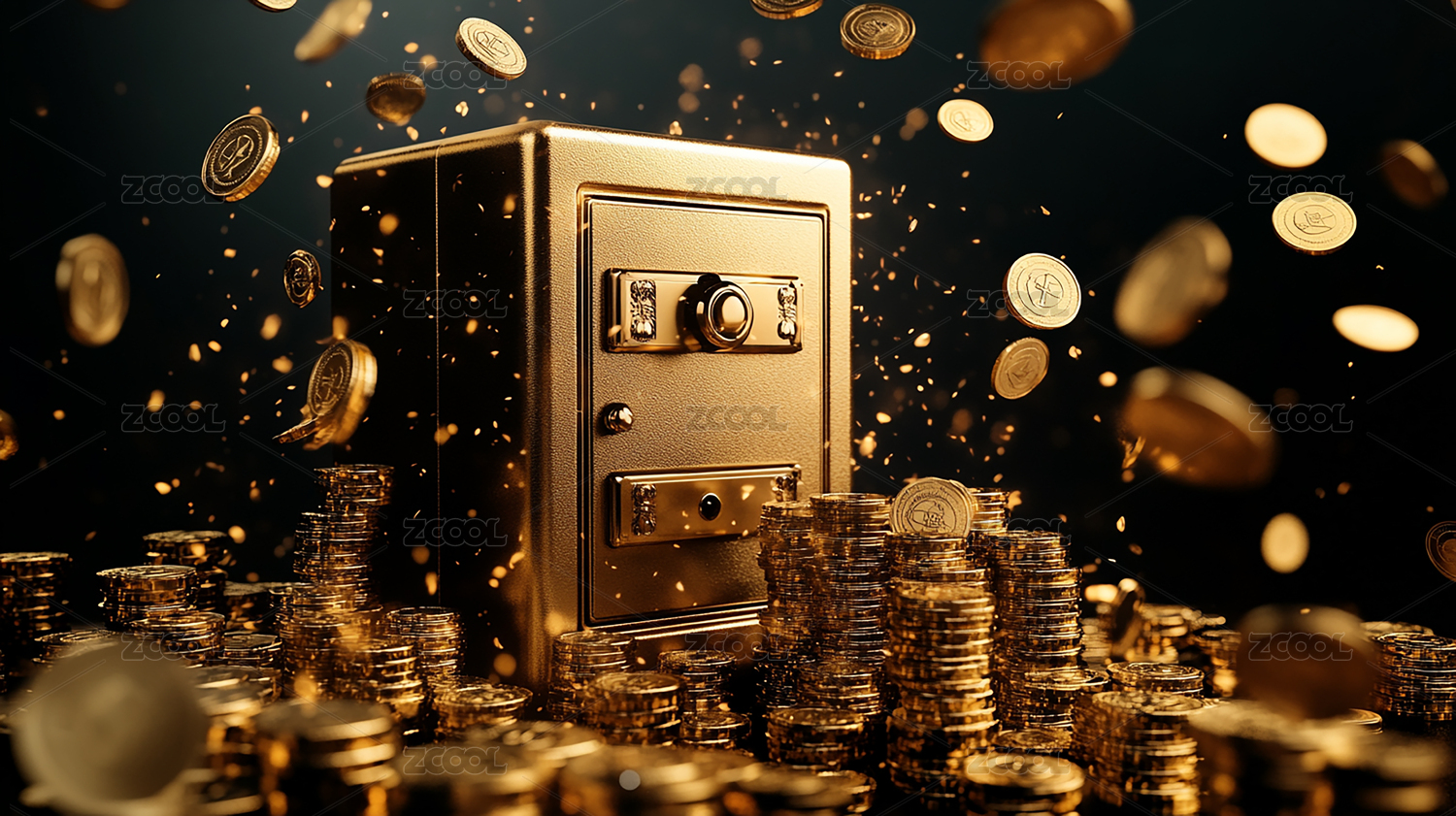 金融保险业保险箱和金币金条背景壁纸