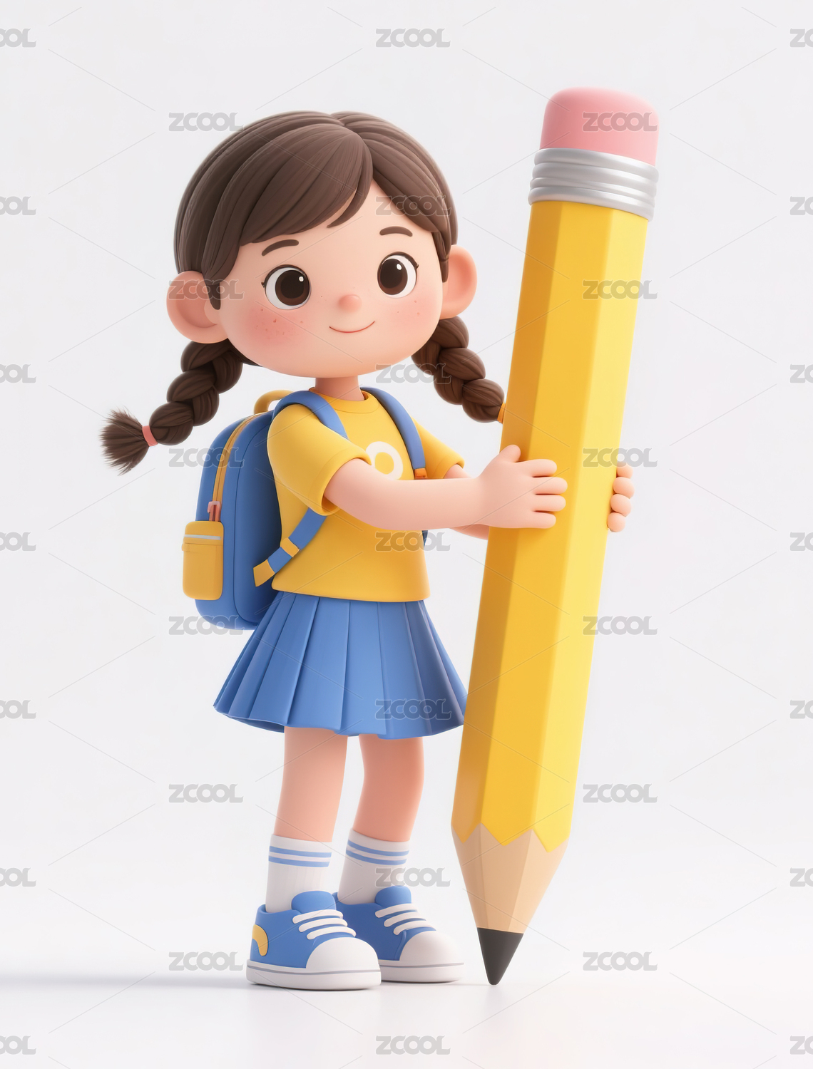 3D,建模,女生,女孩,可爱,课本,教育,学习,渲染,小学生