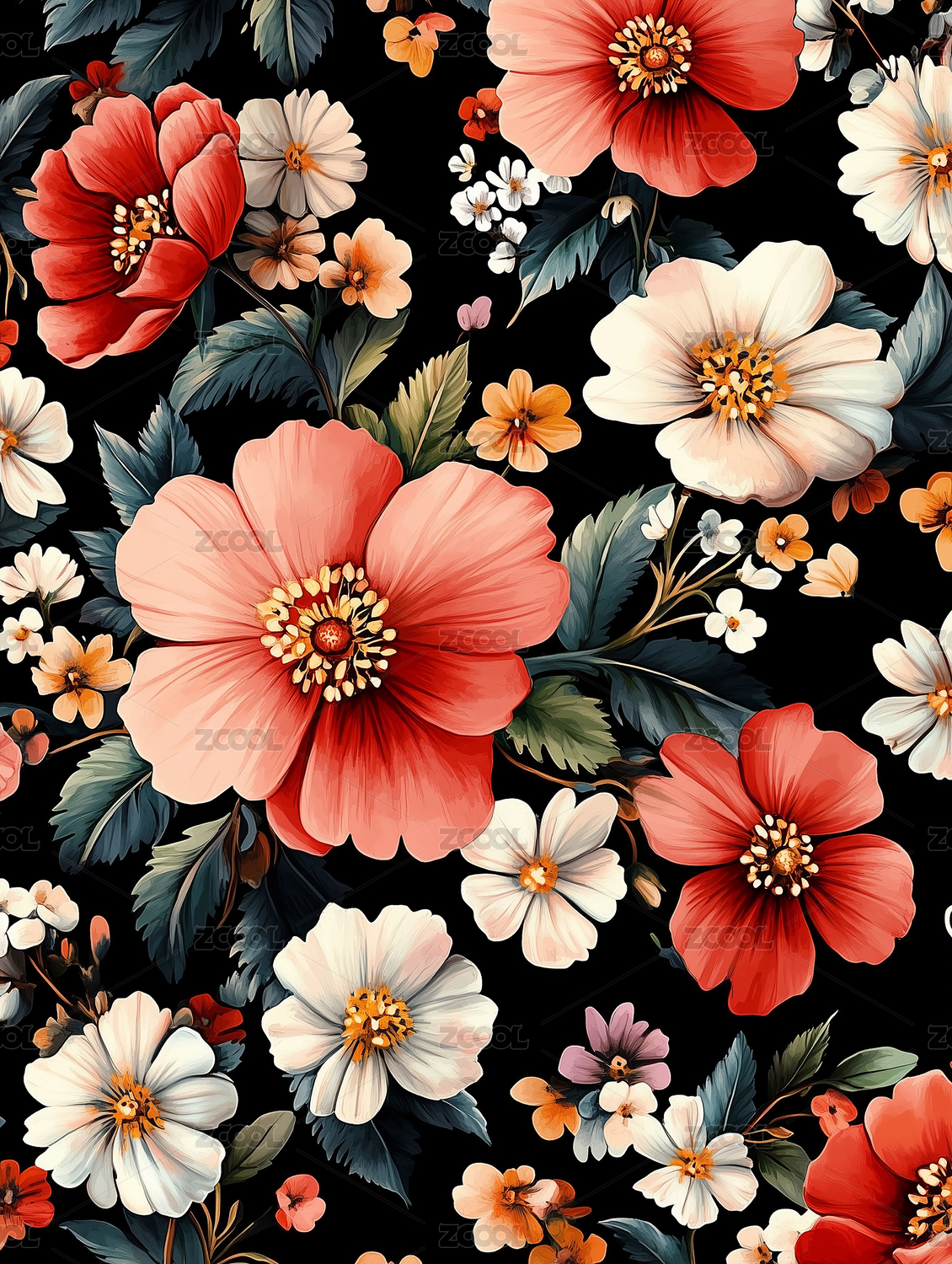 热带,花卉,花朵,复古,印花,手绘,植物,图案