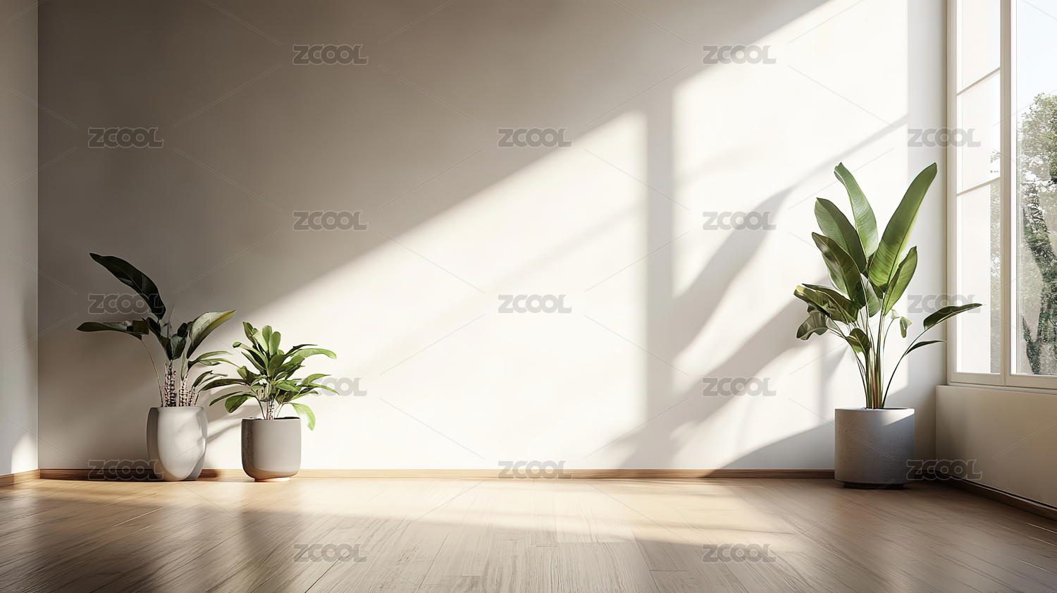 干净的室内白墙和绿植装饰简约空白渲染背景
