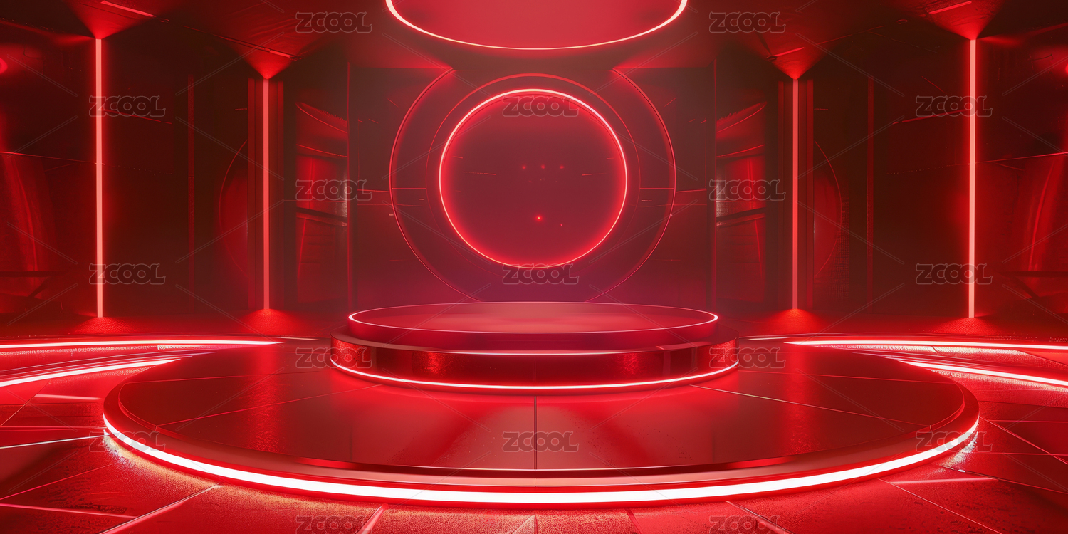 红色圆形舞台与光环的现代设计