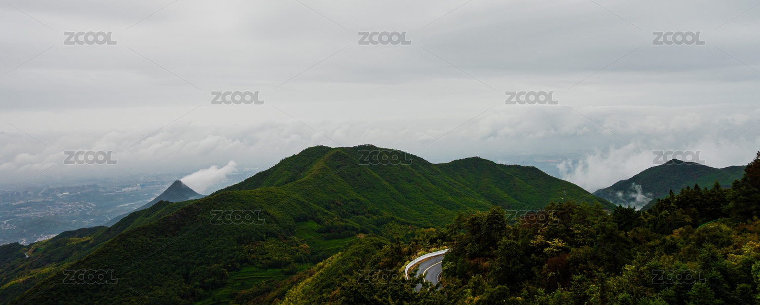 武功山羊狮慕景区云雾缭绕的翠绿山峦