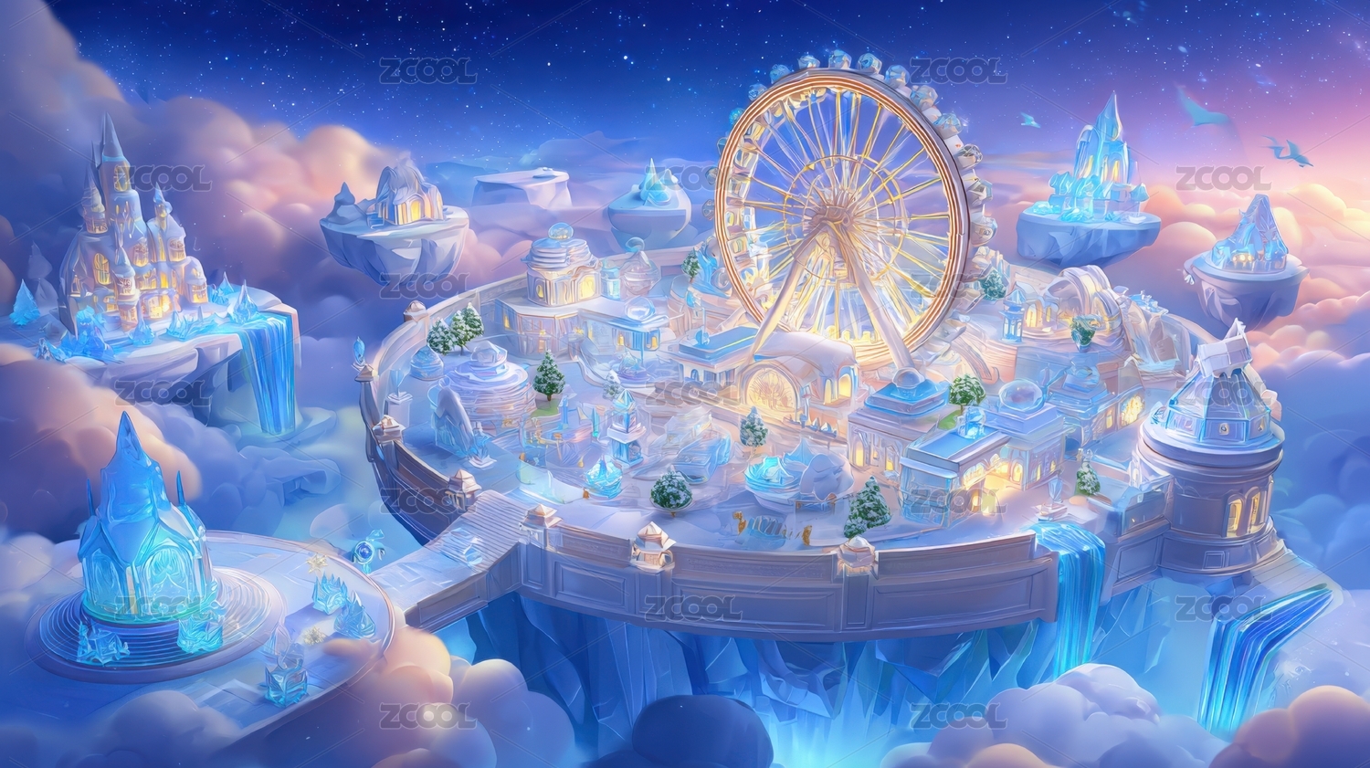 游乐场,过山车,摩天轮,建筑物,快乐,梦幻,棒棒糖,娱乐设施,童真,星空