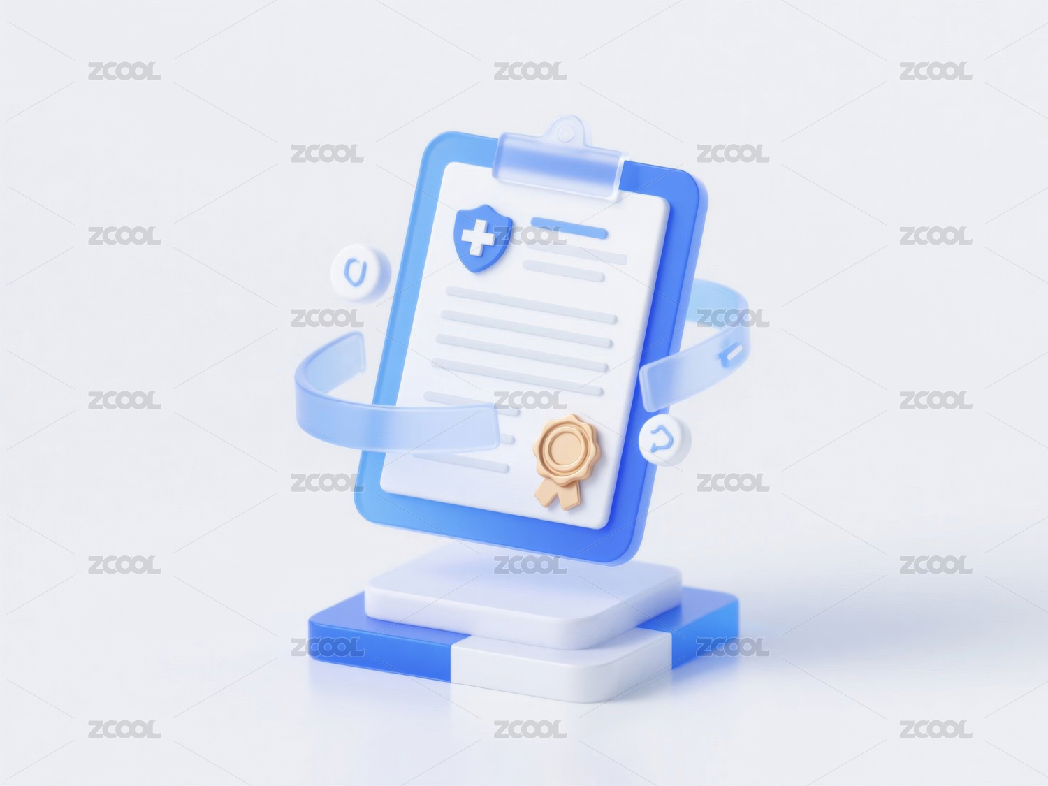 3d蓝色笔记报告夹与金色十字盾牌医疗素材