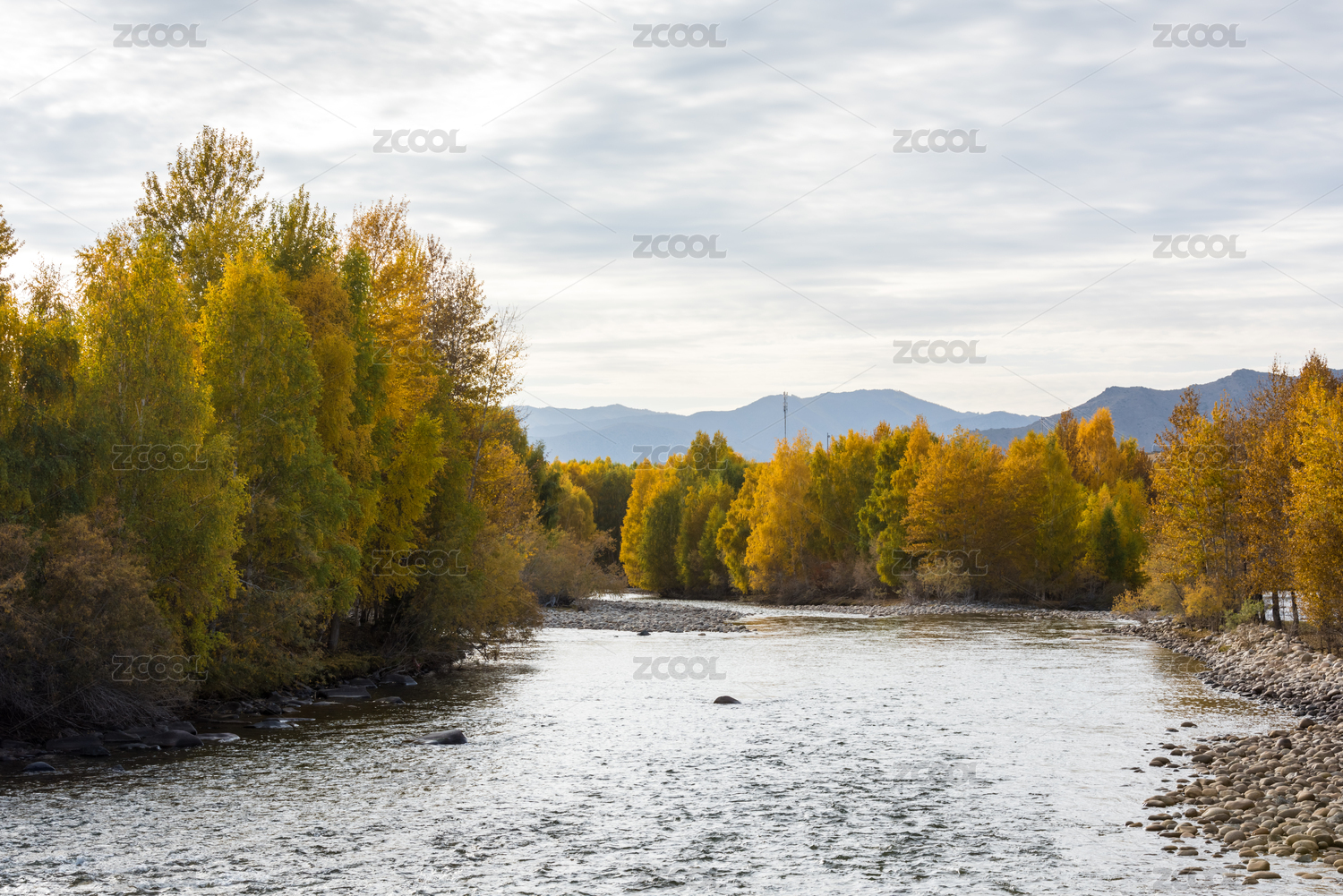 中国新疆阿勒泰可可托海额尔齐斯河溪流秋天