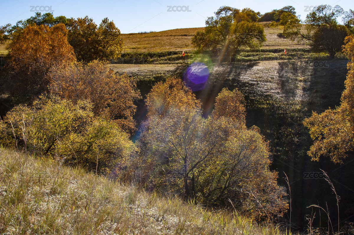 乌兰布统,蛤蟆坝,秋景,秋色,秋季风光,秋天,晴天,阳光,光线,树林