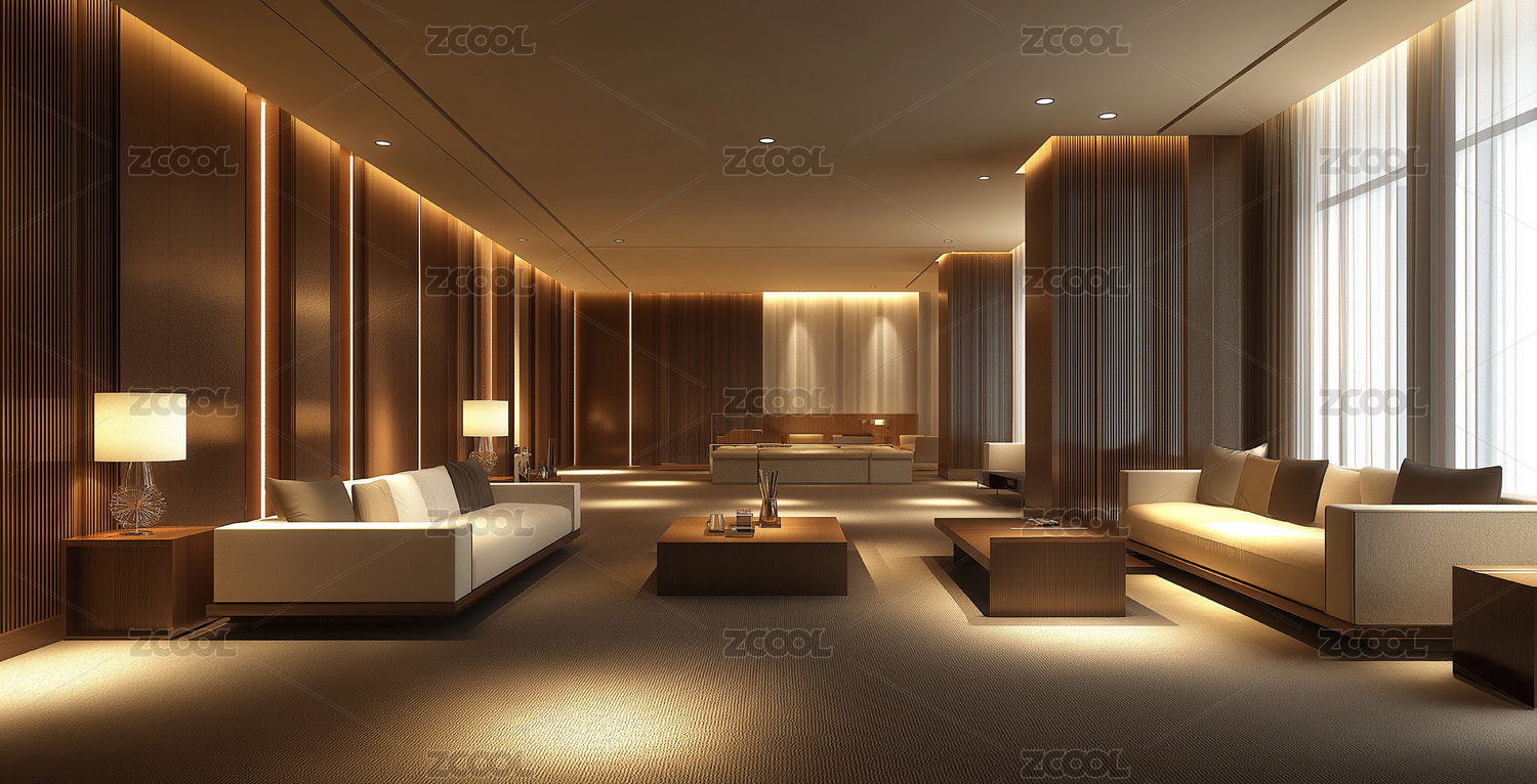 大理石墙和吊灯的现代豪华酒店大堂内部设计