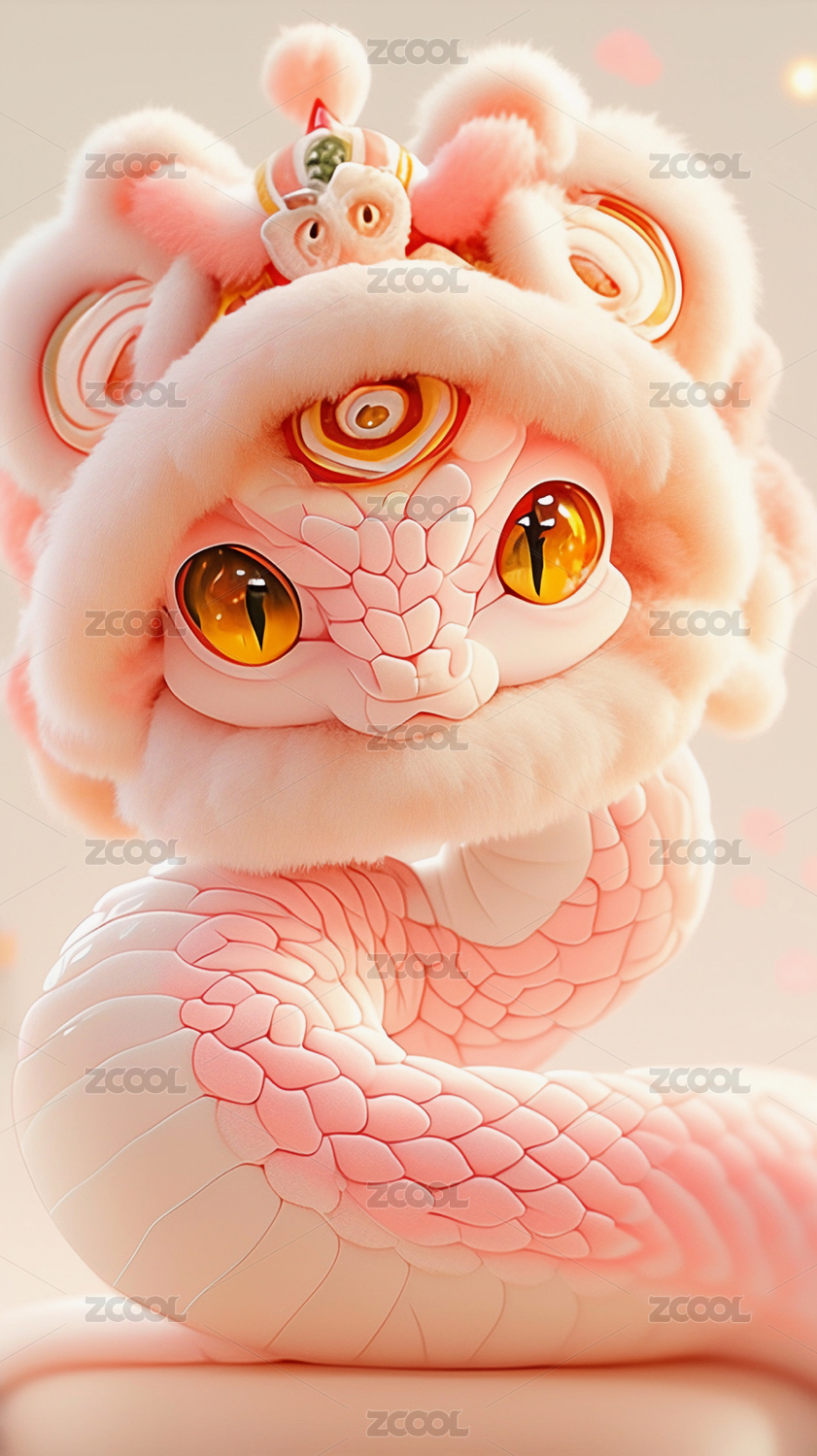 戴着舞狮帽的生肖蛇3D卡通蛇年形象