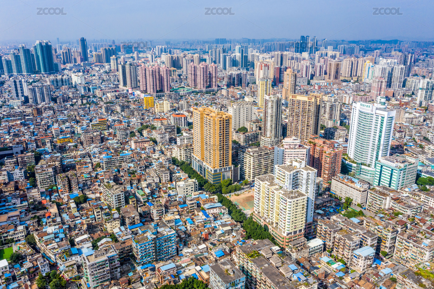 航拍中国广东省广州市黄埔区庙头村村落民居