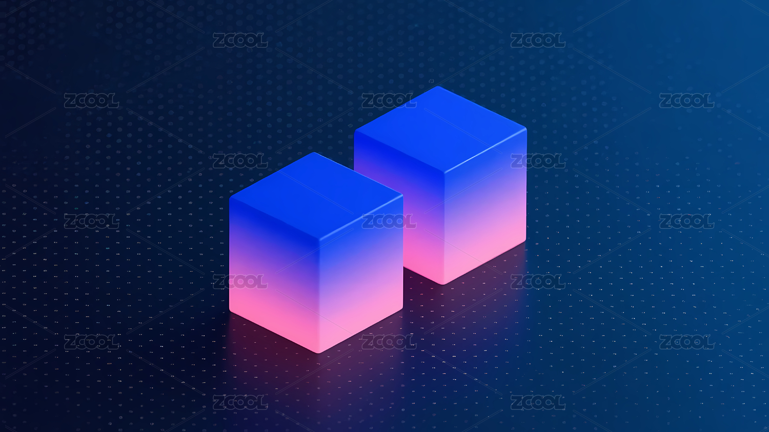 蓝色渐变炫酷方块立体几何简单背景3d渲染