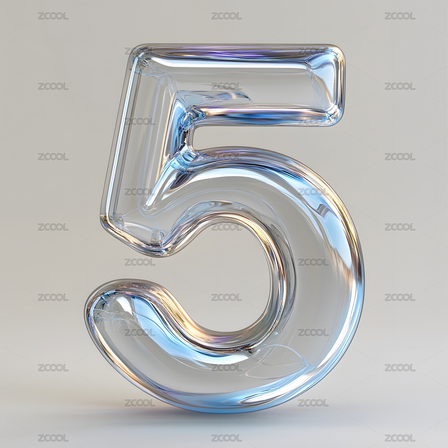 透明玻璃质感数字5