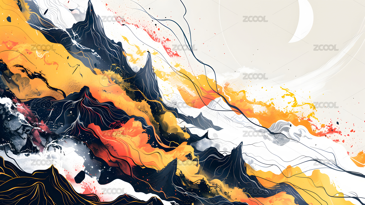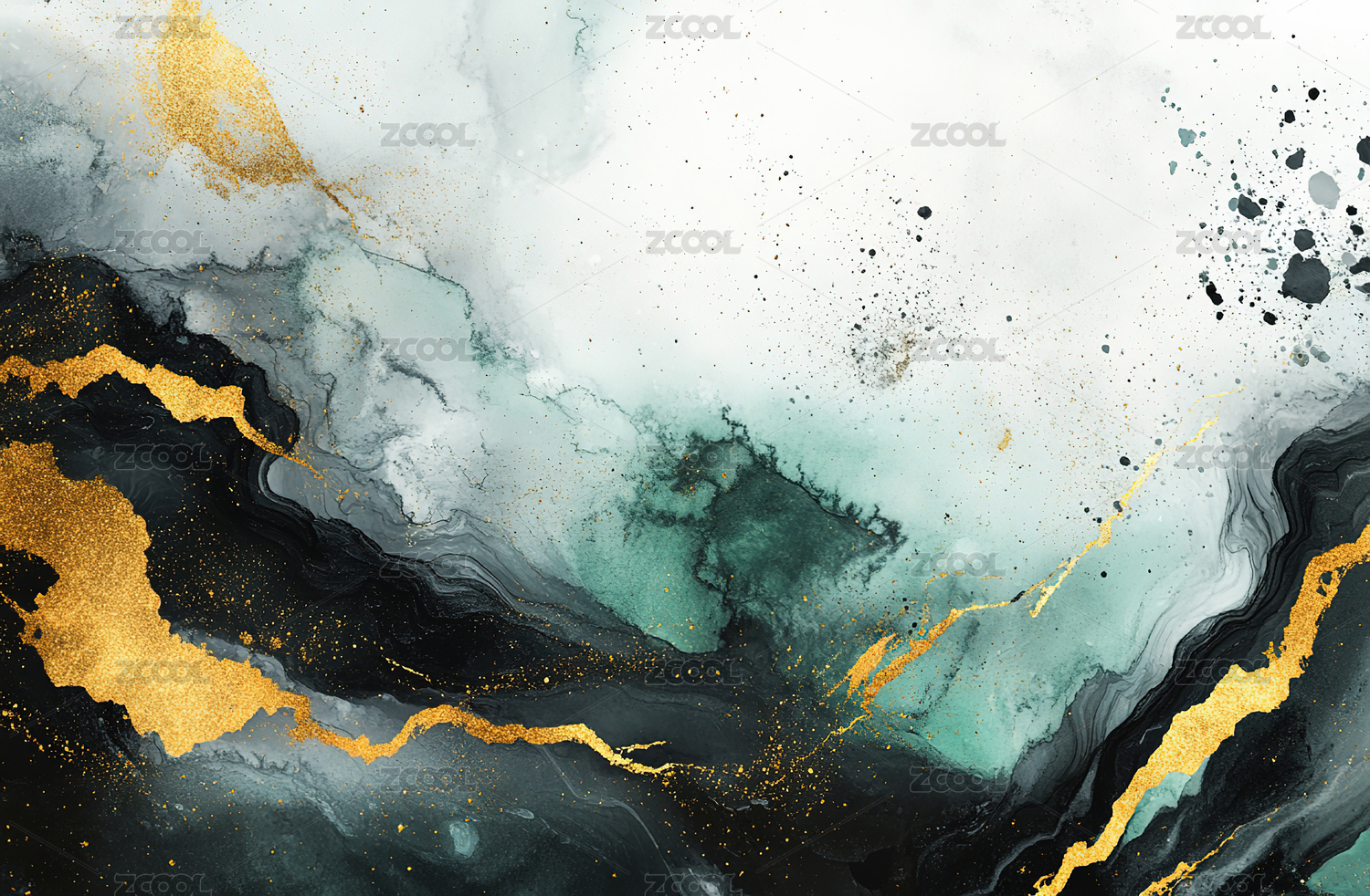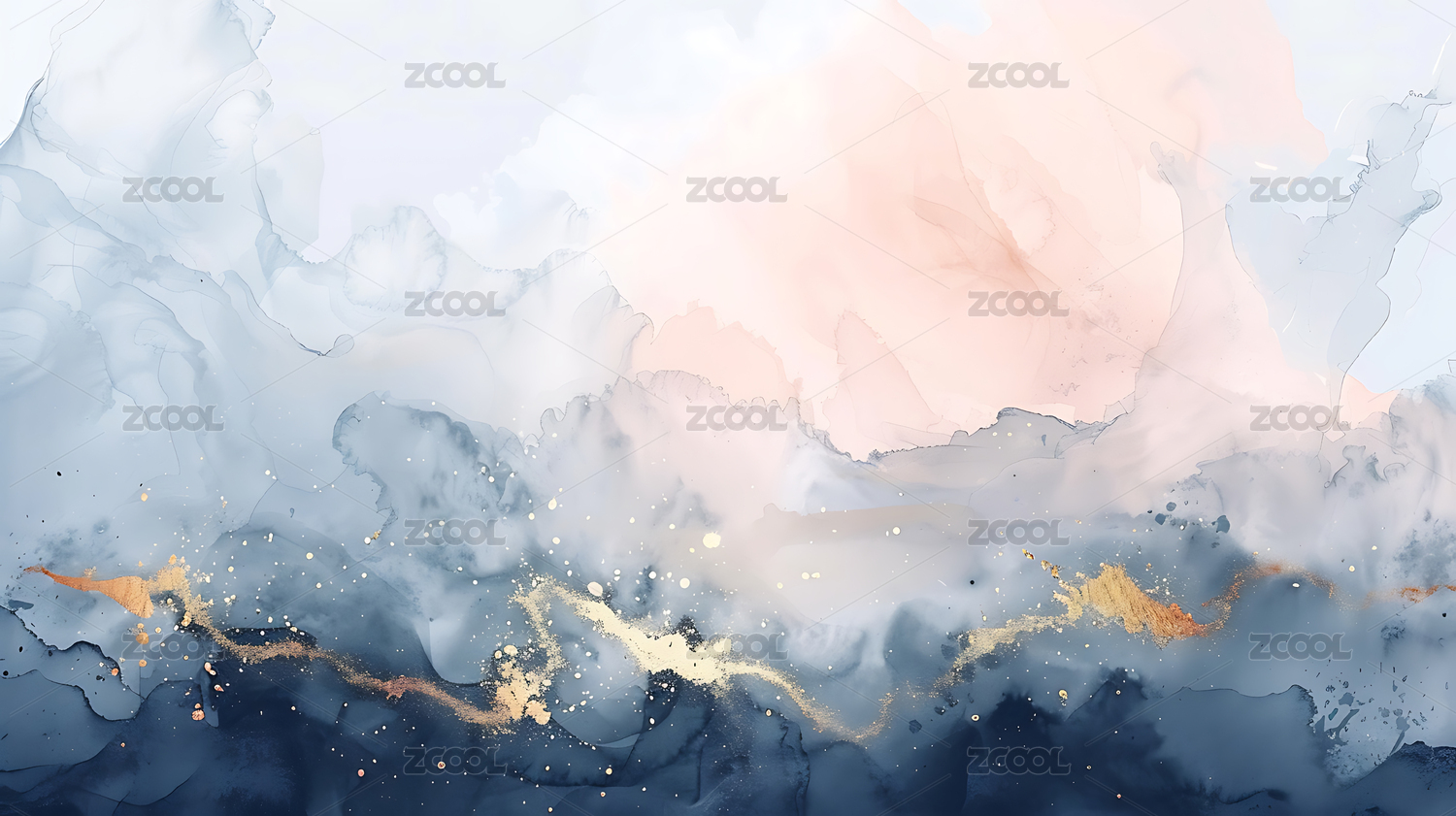 水墨,水彩,岩彩,云雾,云海,壁画,敦煌,中国风,错金,鎏金