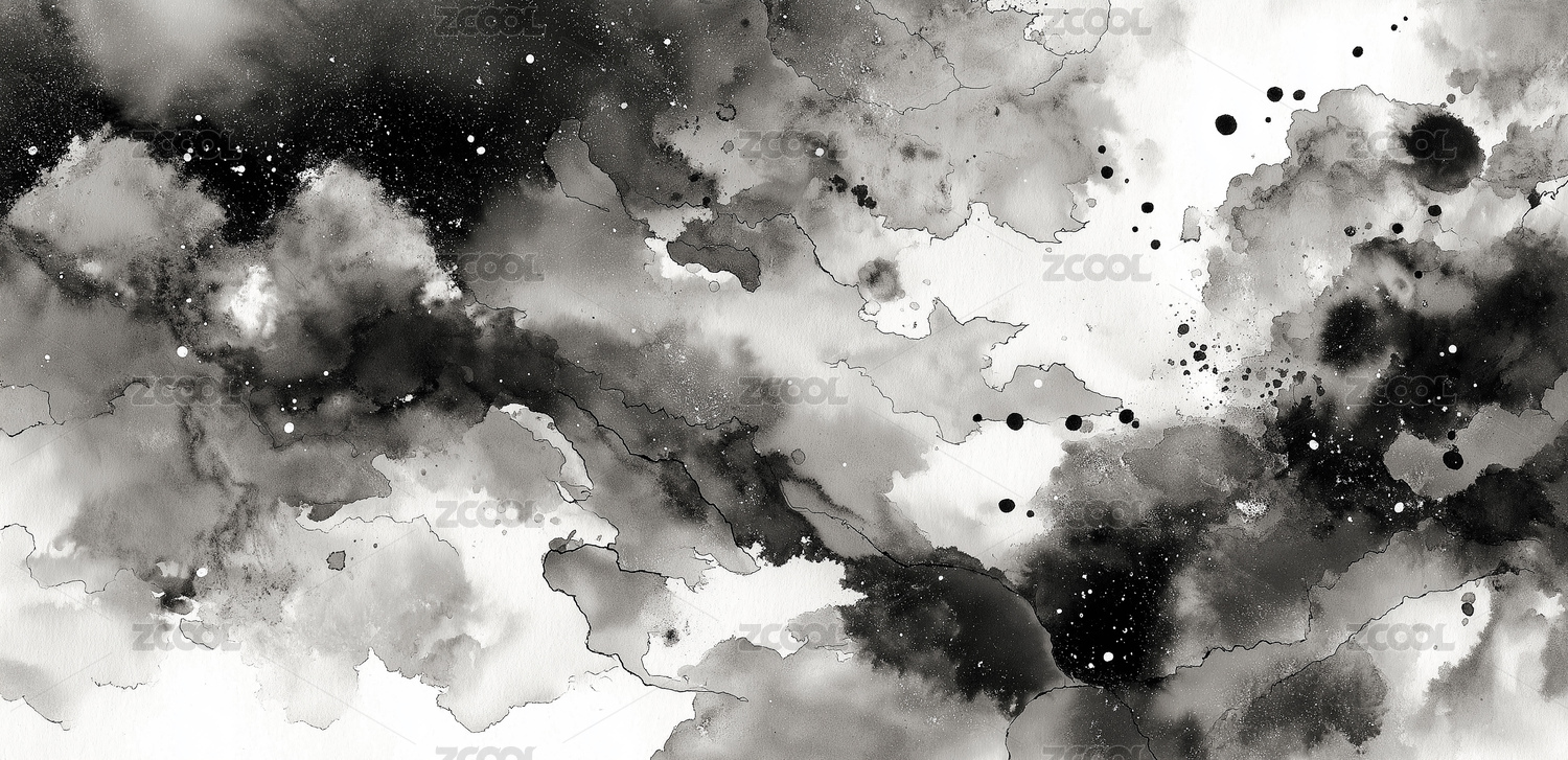 黑白水墨晕染交织呈现空灵意境的艺术视觉