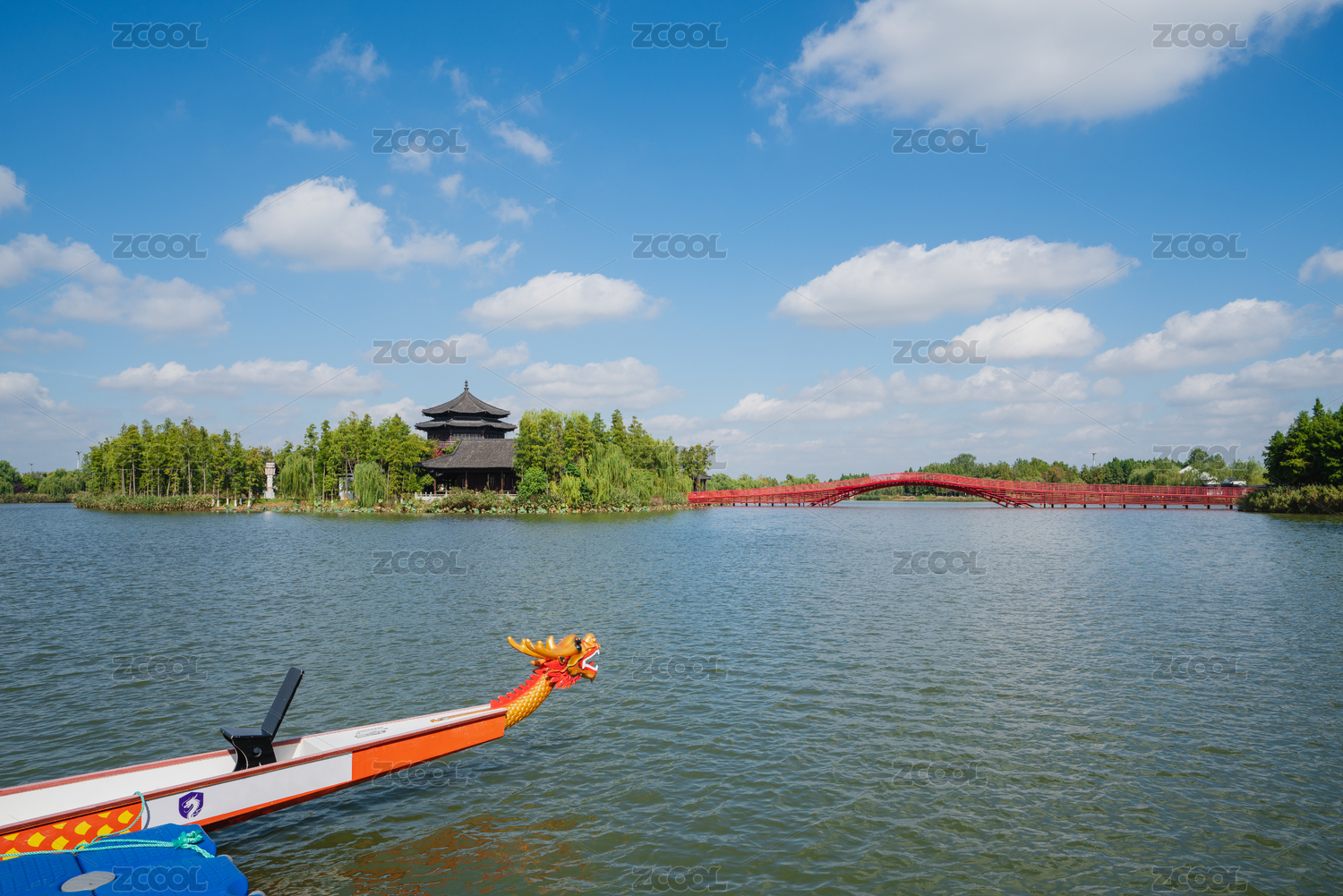蓝天白云下江苏盐城大洋湾旅游风景区景观