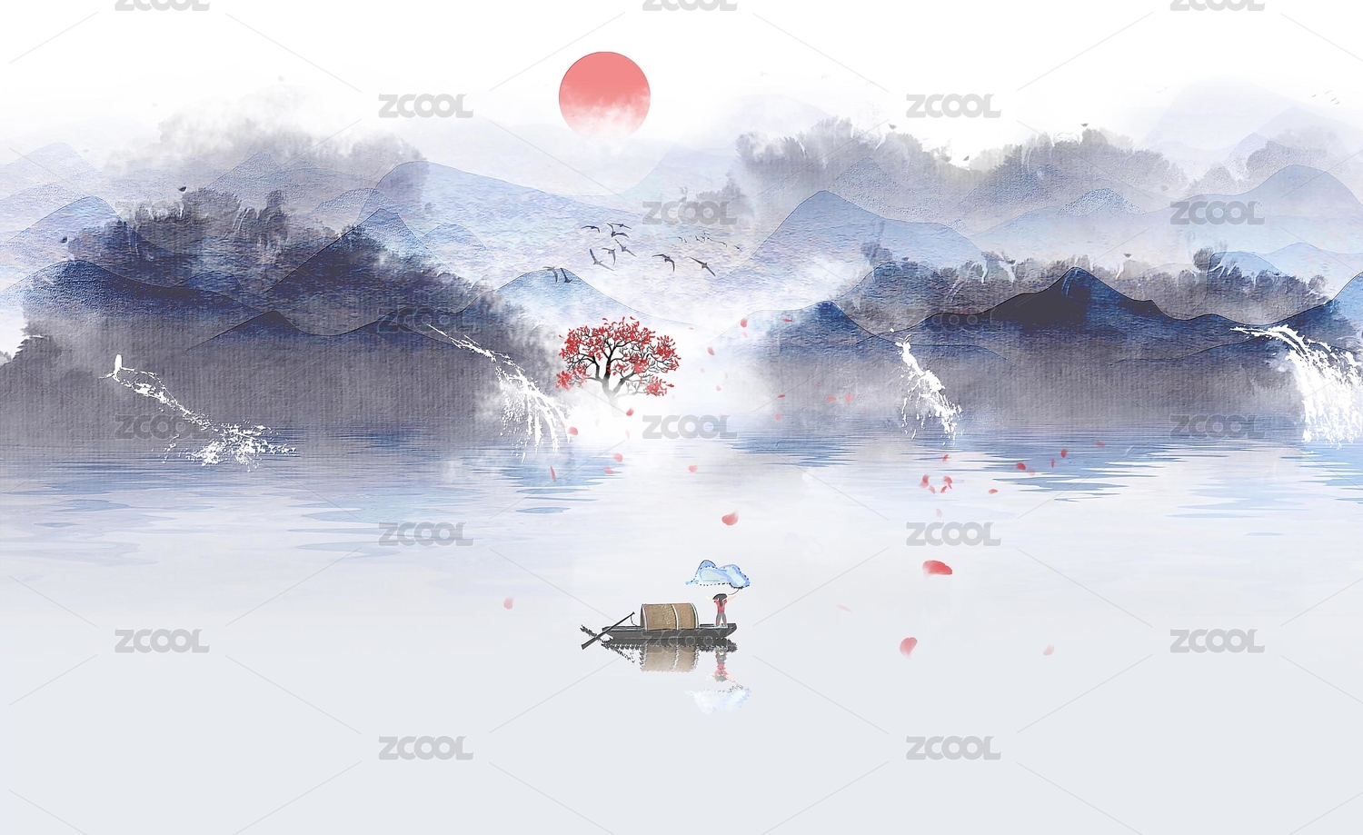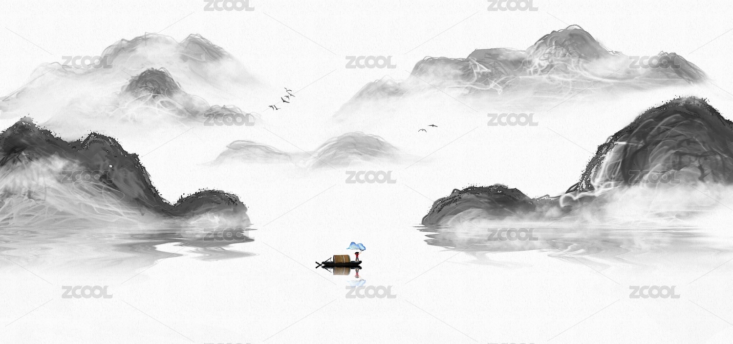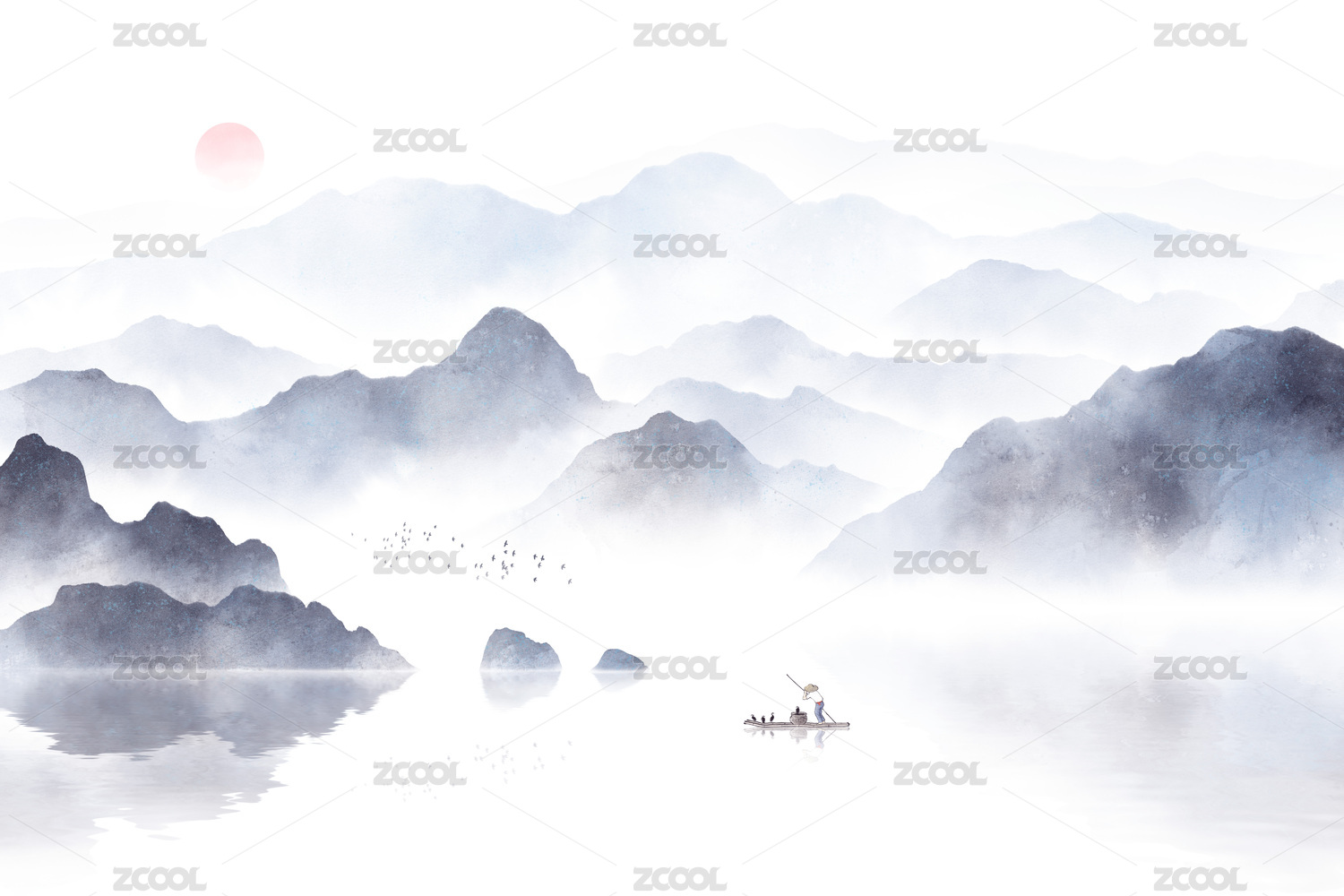 中国风,水墨,工笔,山水,日出,意境,背景,素材,国风,黑白
