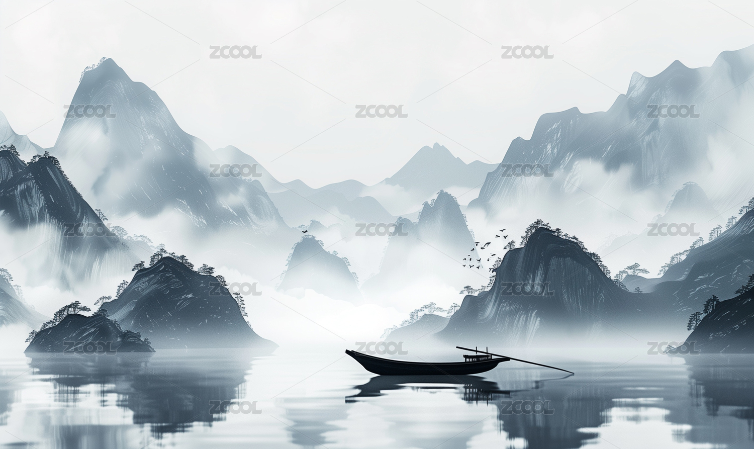 国风中式禅意水墨画