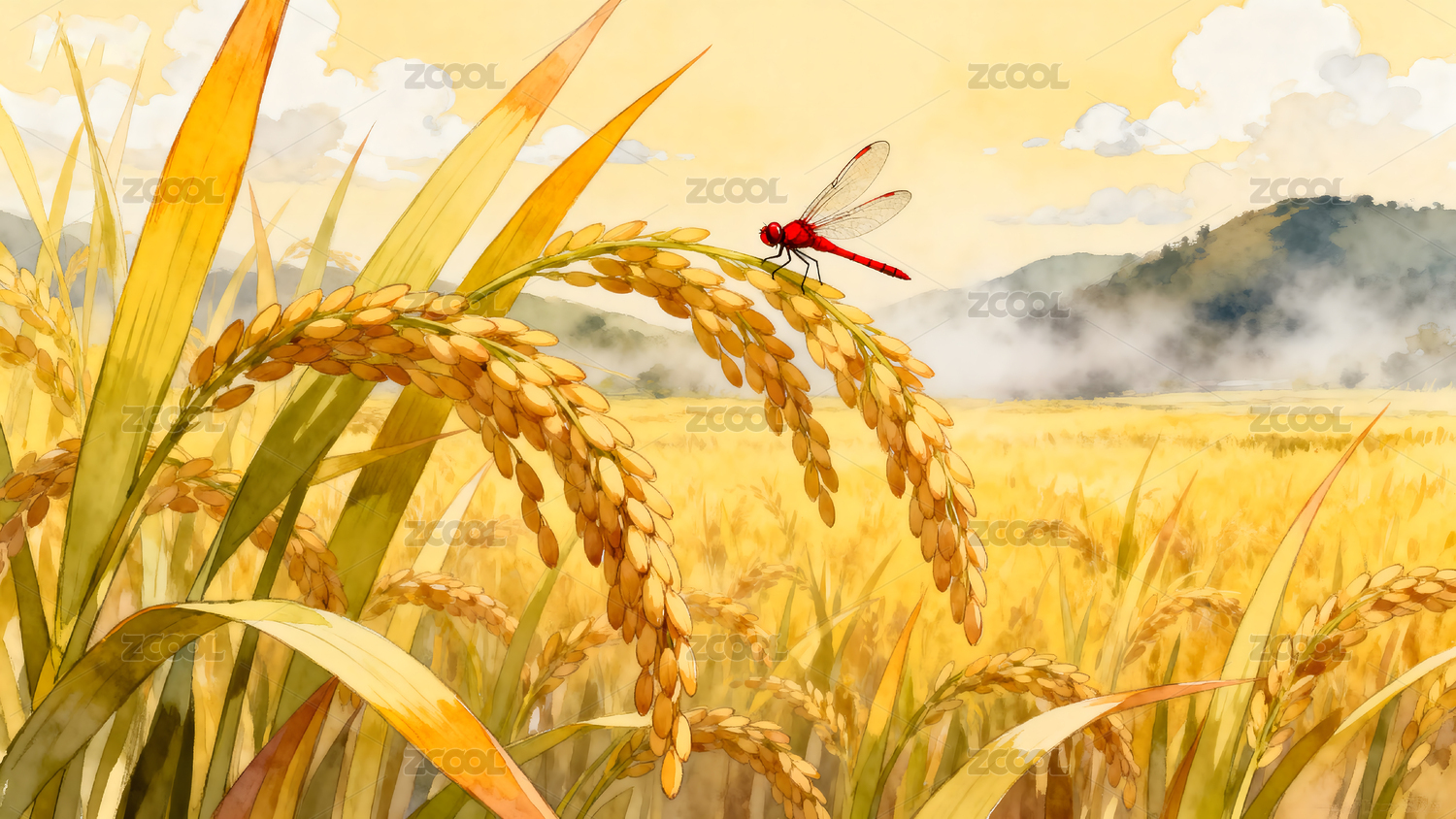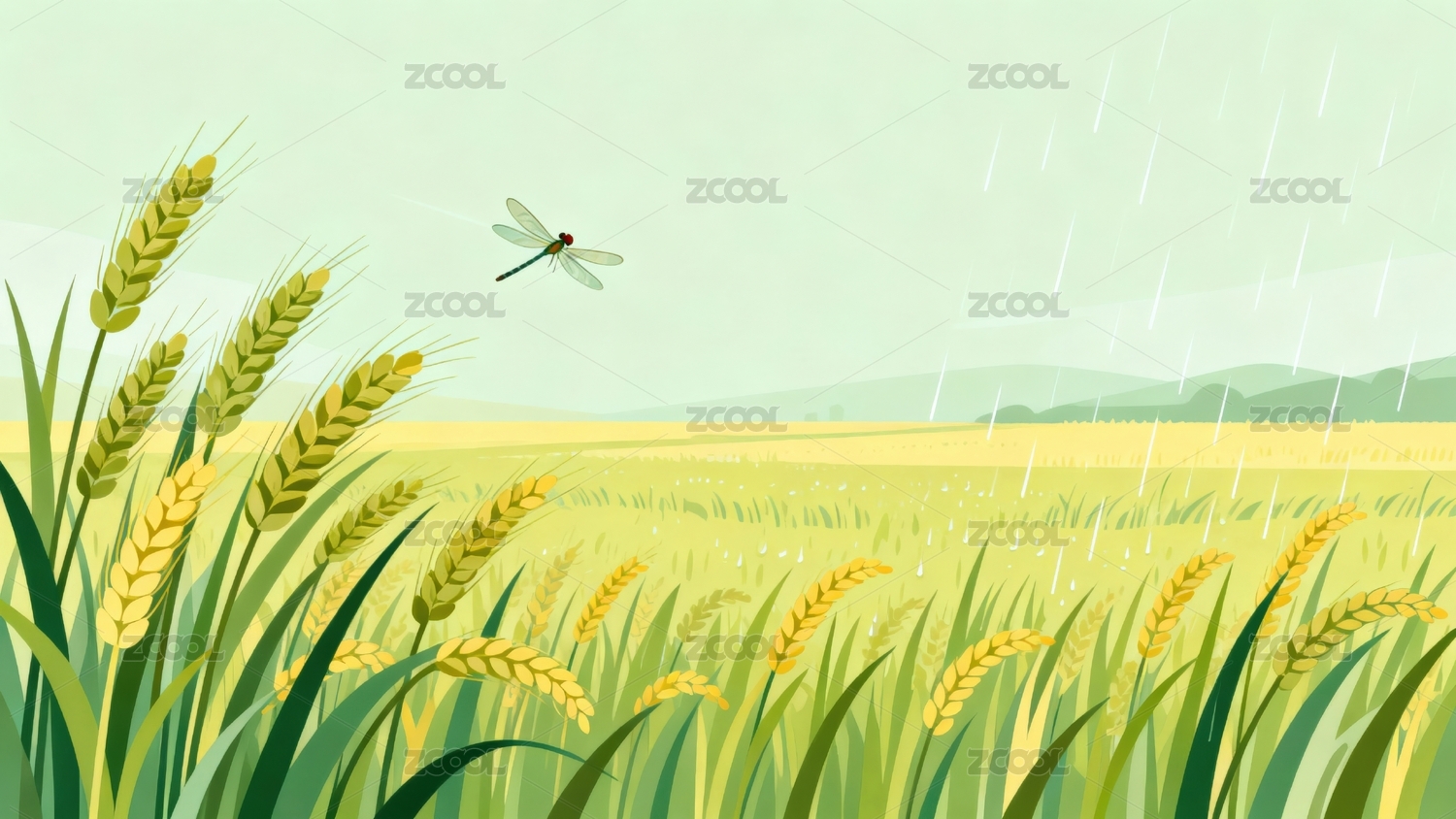 麦田蜻蜓细雨