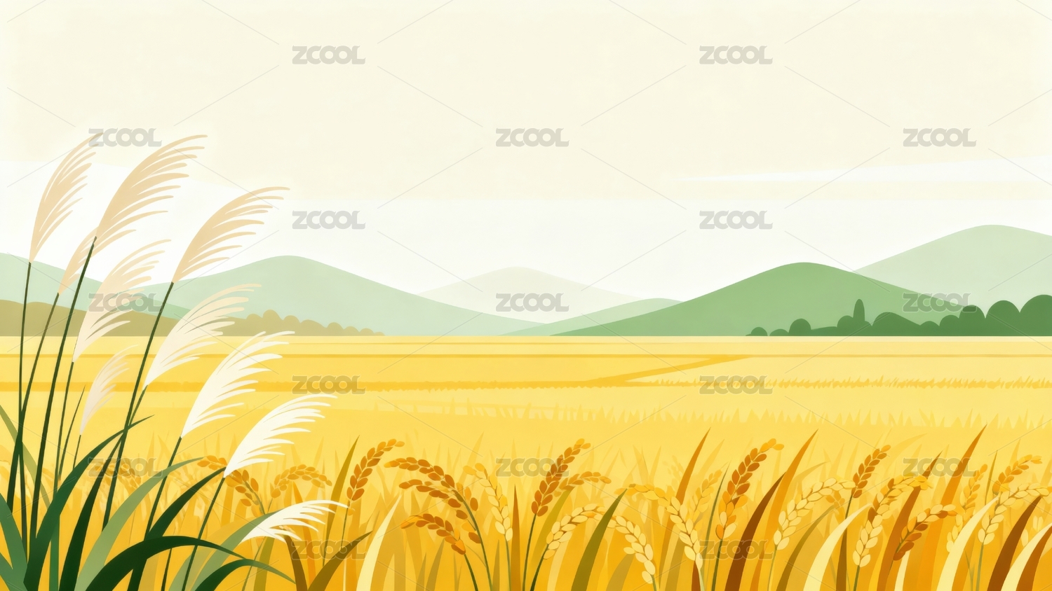 春天麦田自然风景插画