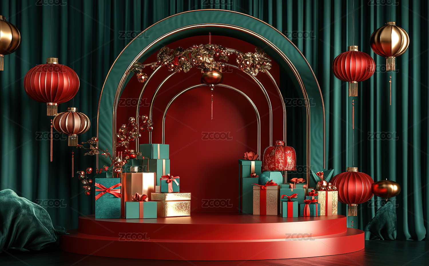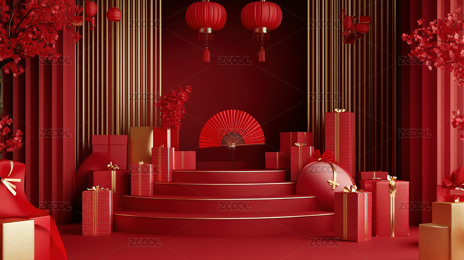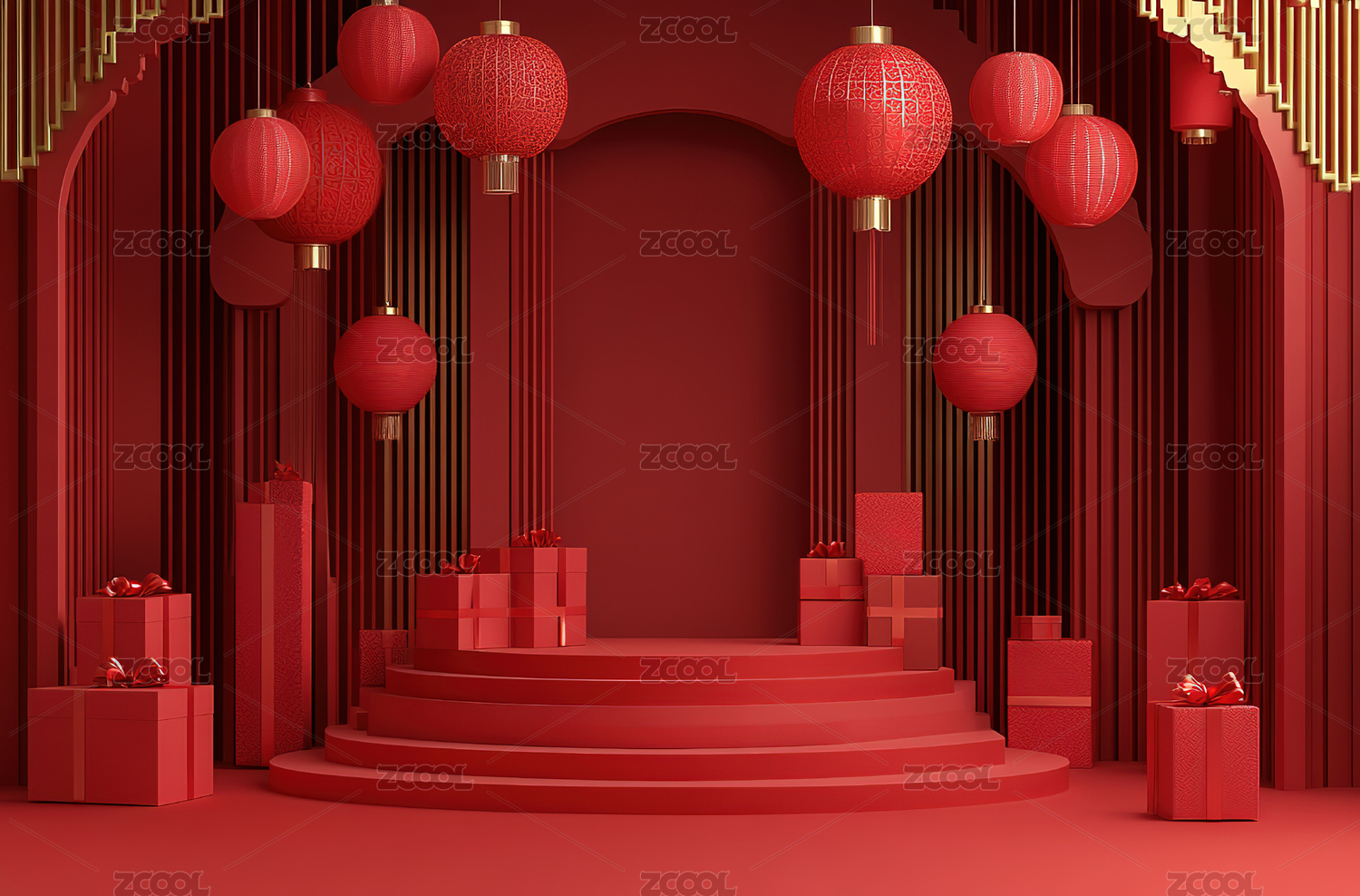 红色,春节,中国文化,背景,三维图形,礼物,创造力,产品展台,插画,人造空间
