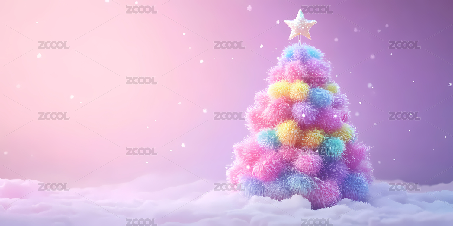 彩色背景下的挂满装饰物的圣诞树特写镜头