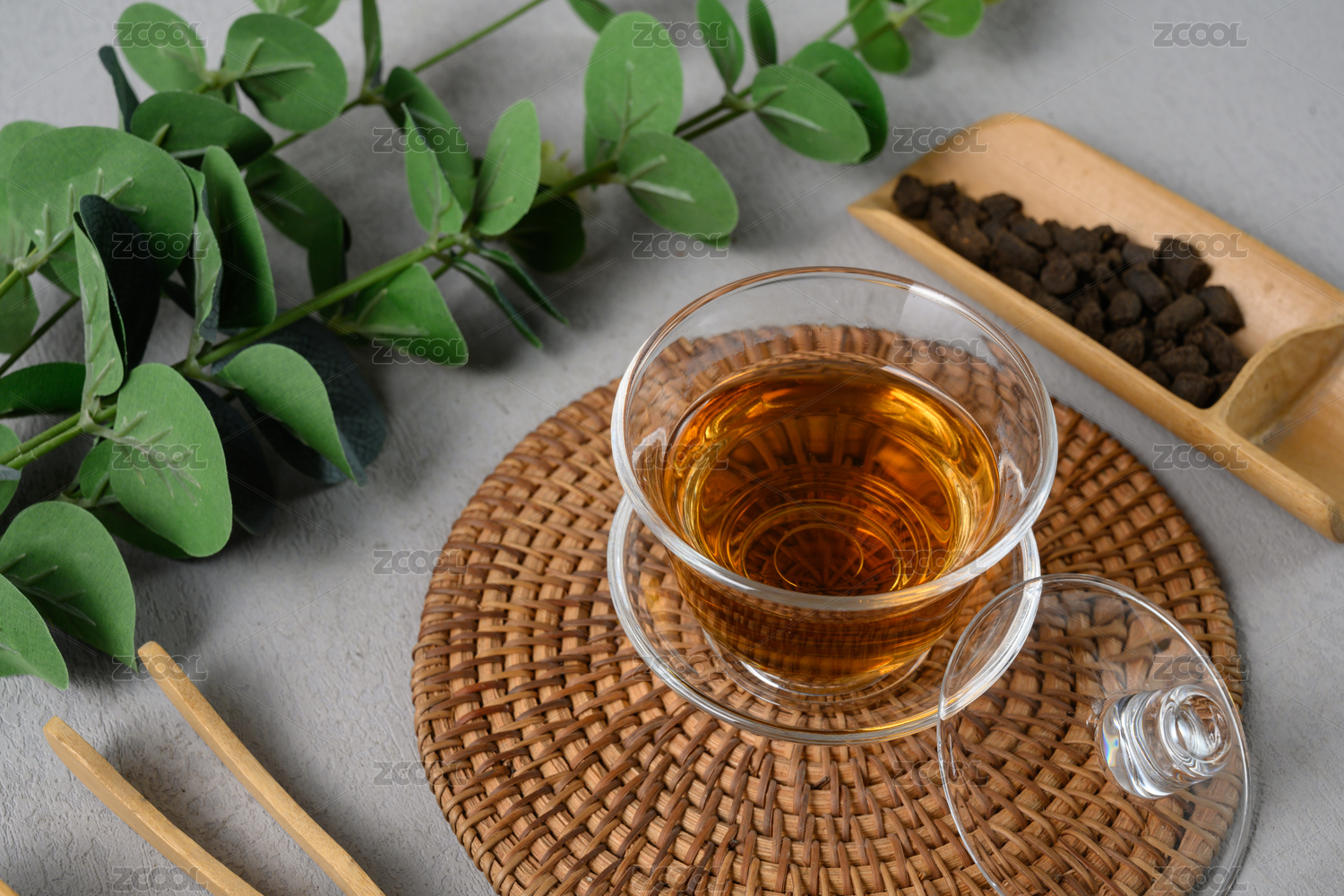 桌面上的杯子里的美味可口的桂花乌龙茶