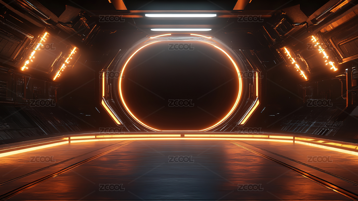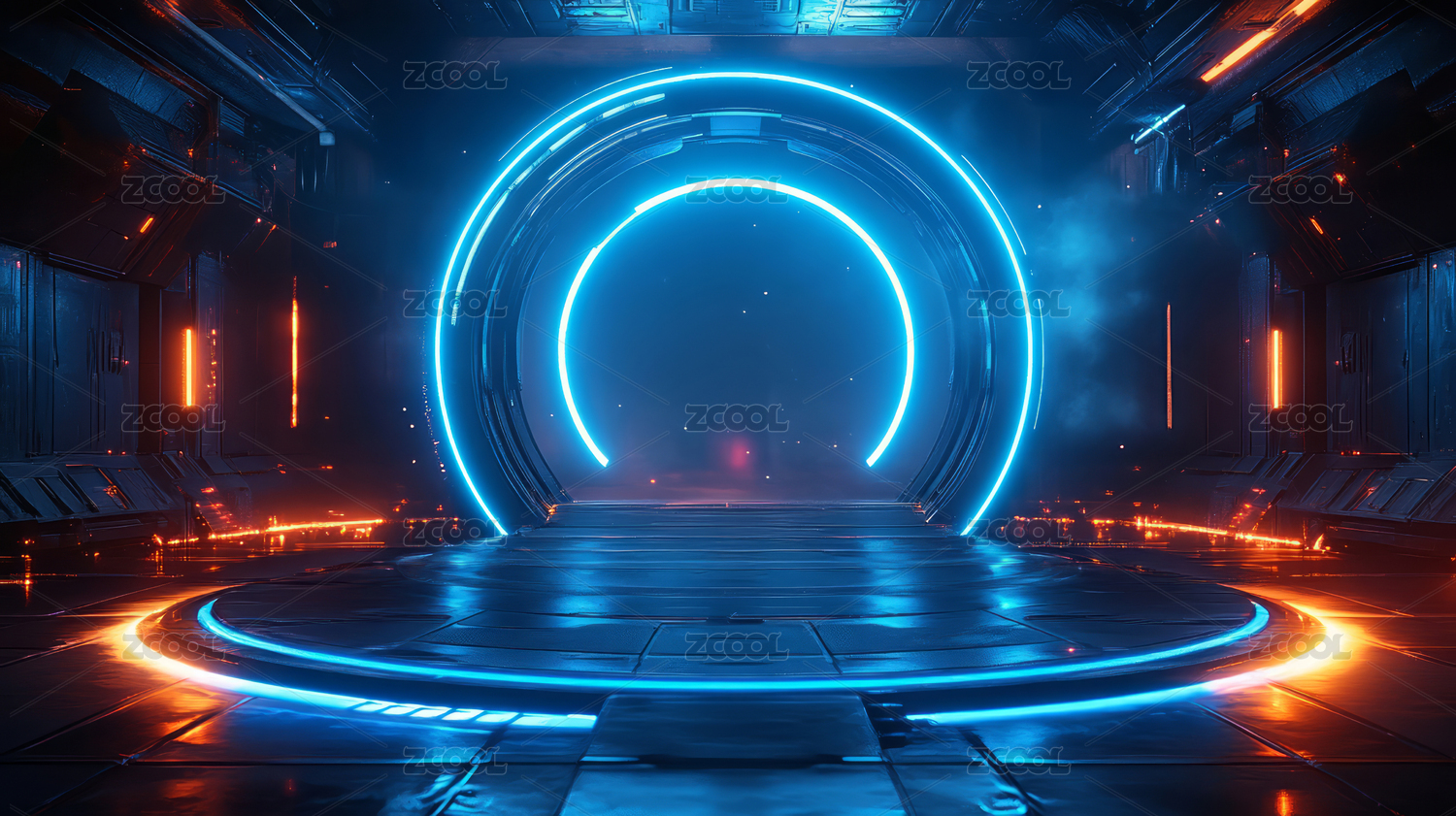 3D霓虹光圈未来科技空间感商务背景3D霓