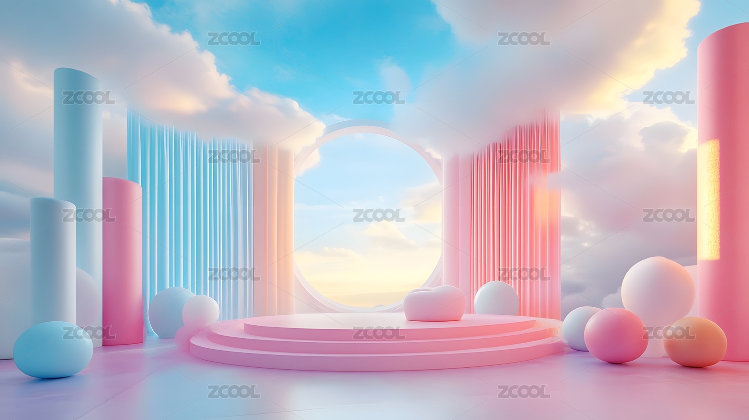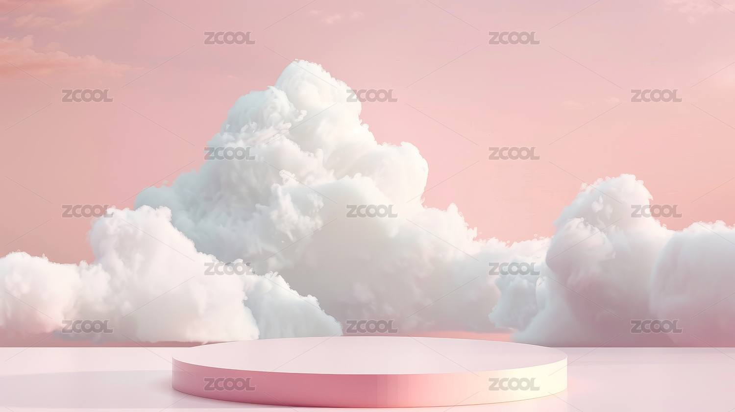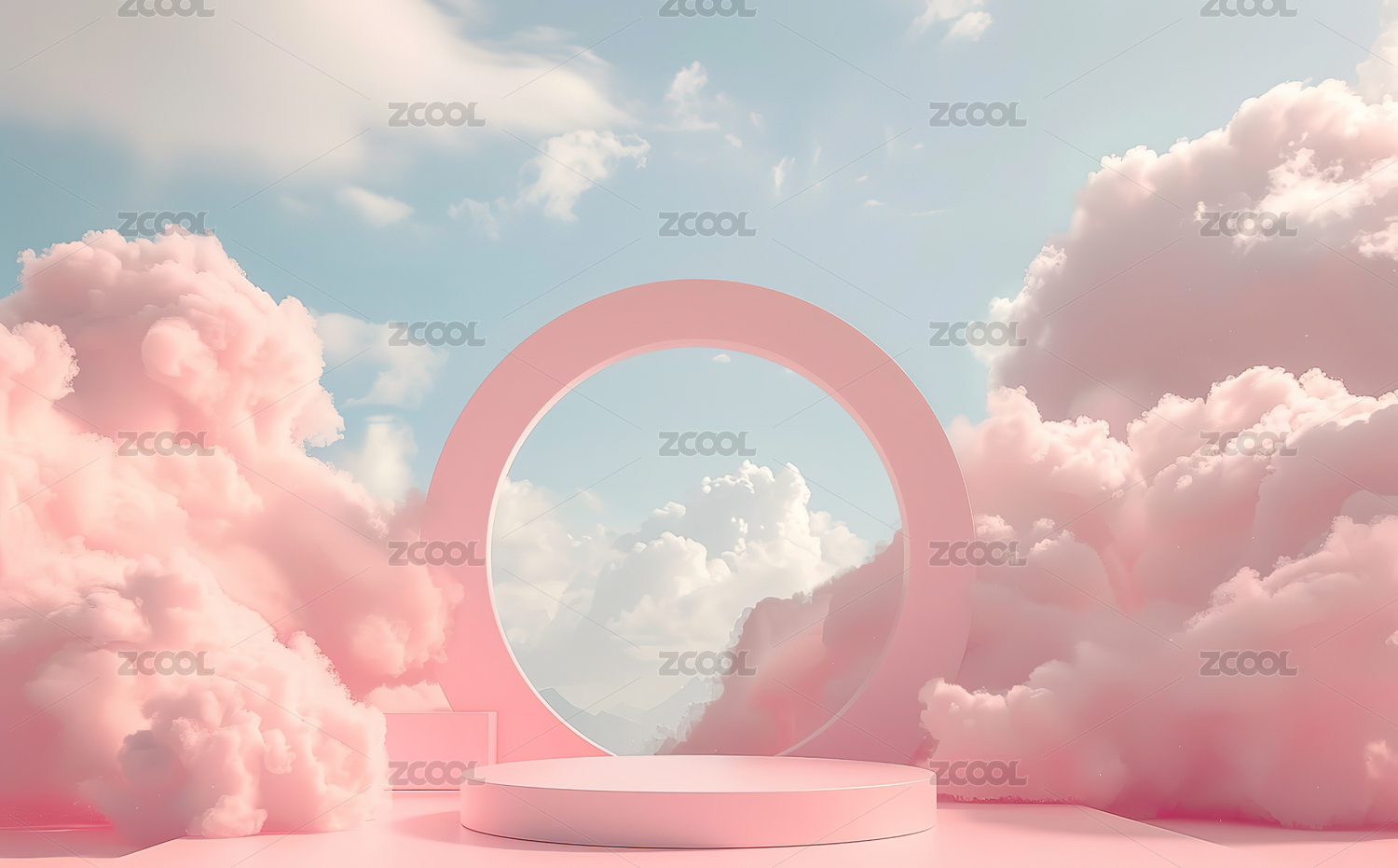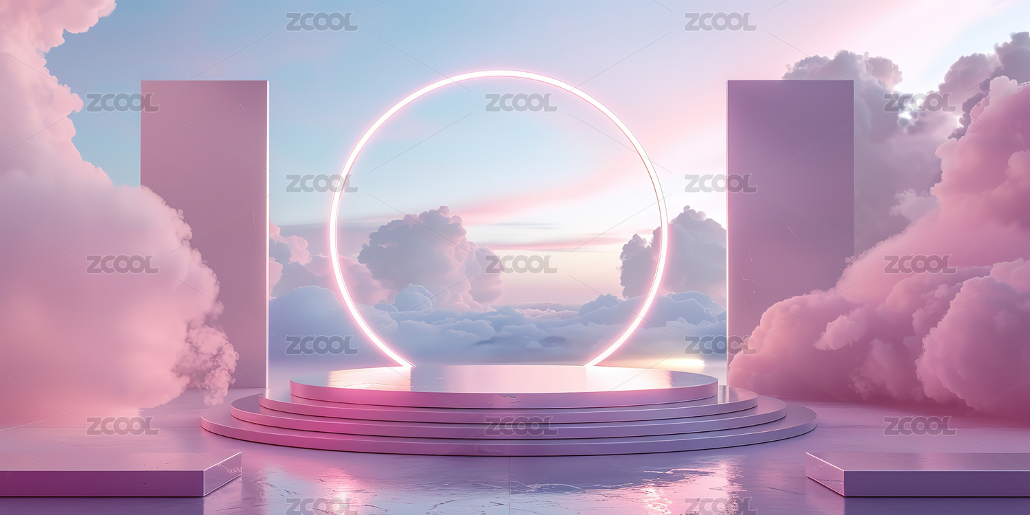 蓝天白云背景粉色立体圆形中产品展示台