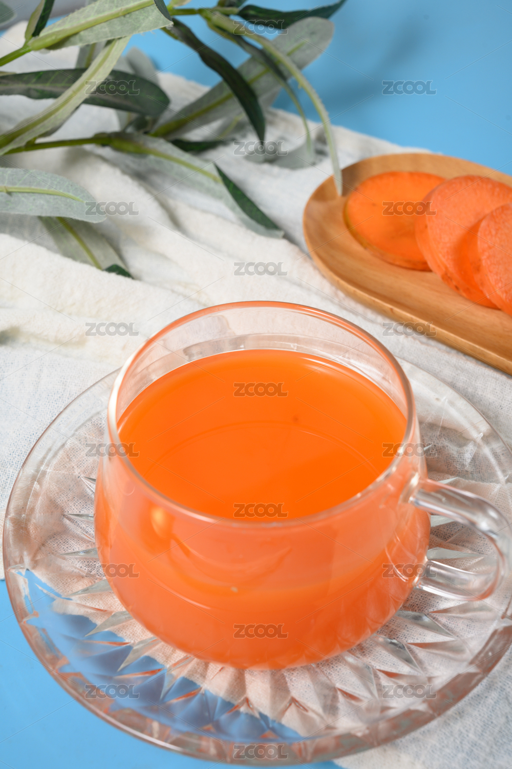 桌面上的盘子里的美味可口的甘笋汁