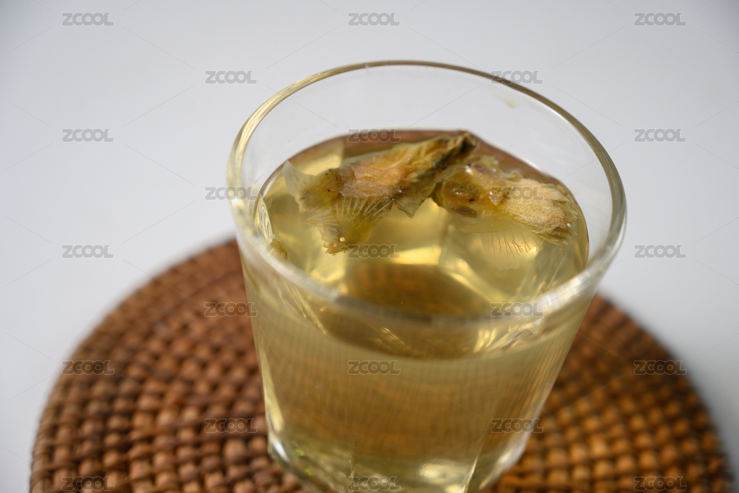 桌面上的杯子里的甘甜可口的冰茉莉花茶